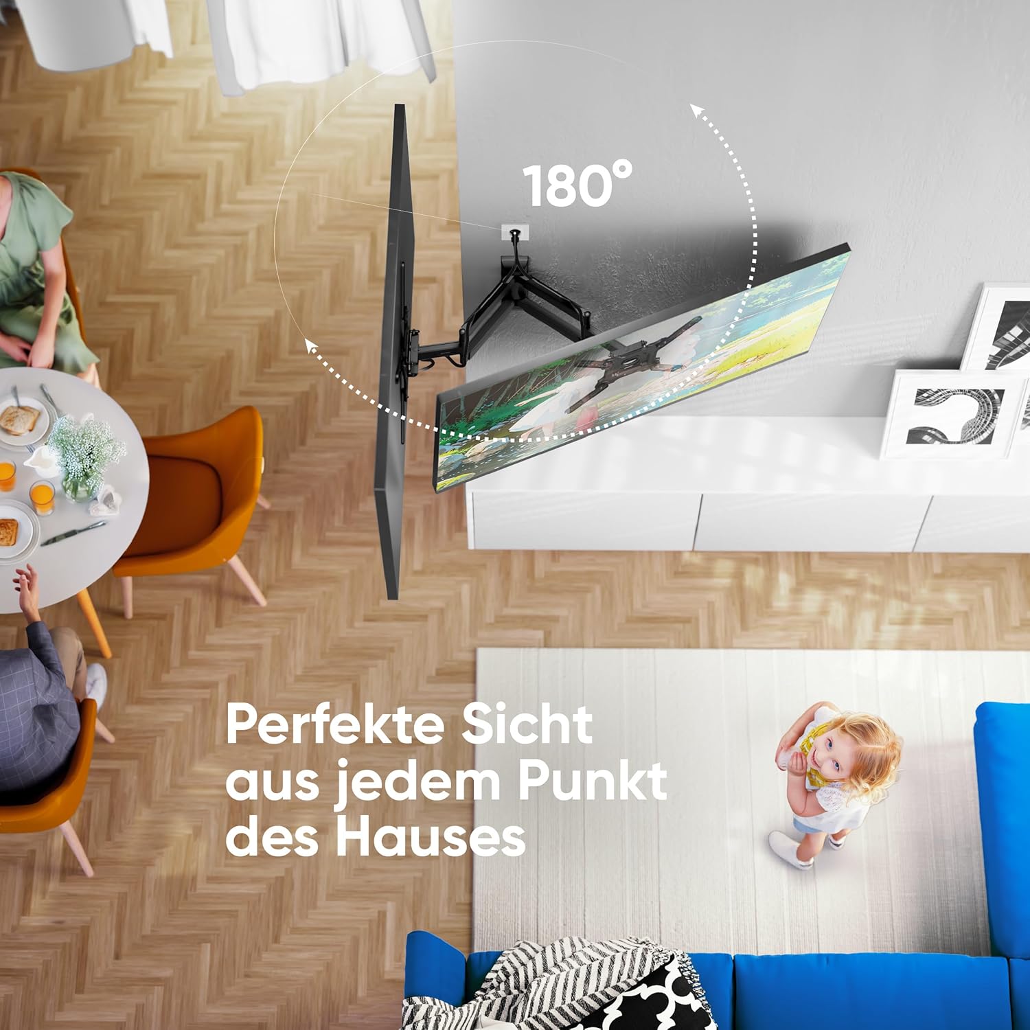 • PRAKTISCHER WANDHALTER TV | Dank der vielen Einstellmöglichkeiten der Wandhalterung Fernseher schwenkbar können Sie das bequemste TV-Erlebnis erzielen | Mit diesem TV Wandhalter kann man den Zugang zum Fernseher für Kinder oder Haustiere einschränken