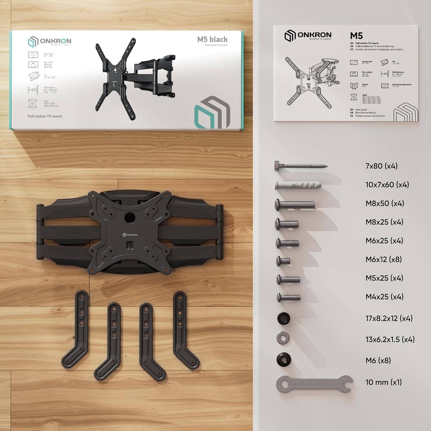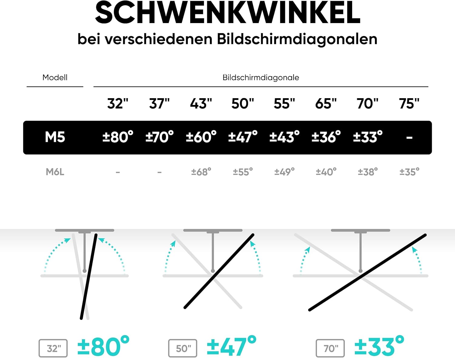 - UNIVERSELLE TV WANDHALTERUNG | ONKRON M5 - neig- und schwenkbare Wandhalterung für die Montage von TV-Diagonalen von 37" bis 70" bis zu 36,4 kg mit VESA100x100 - 400x400