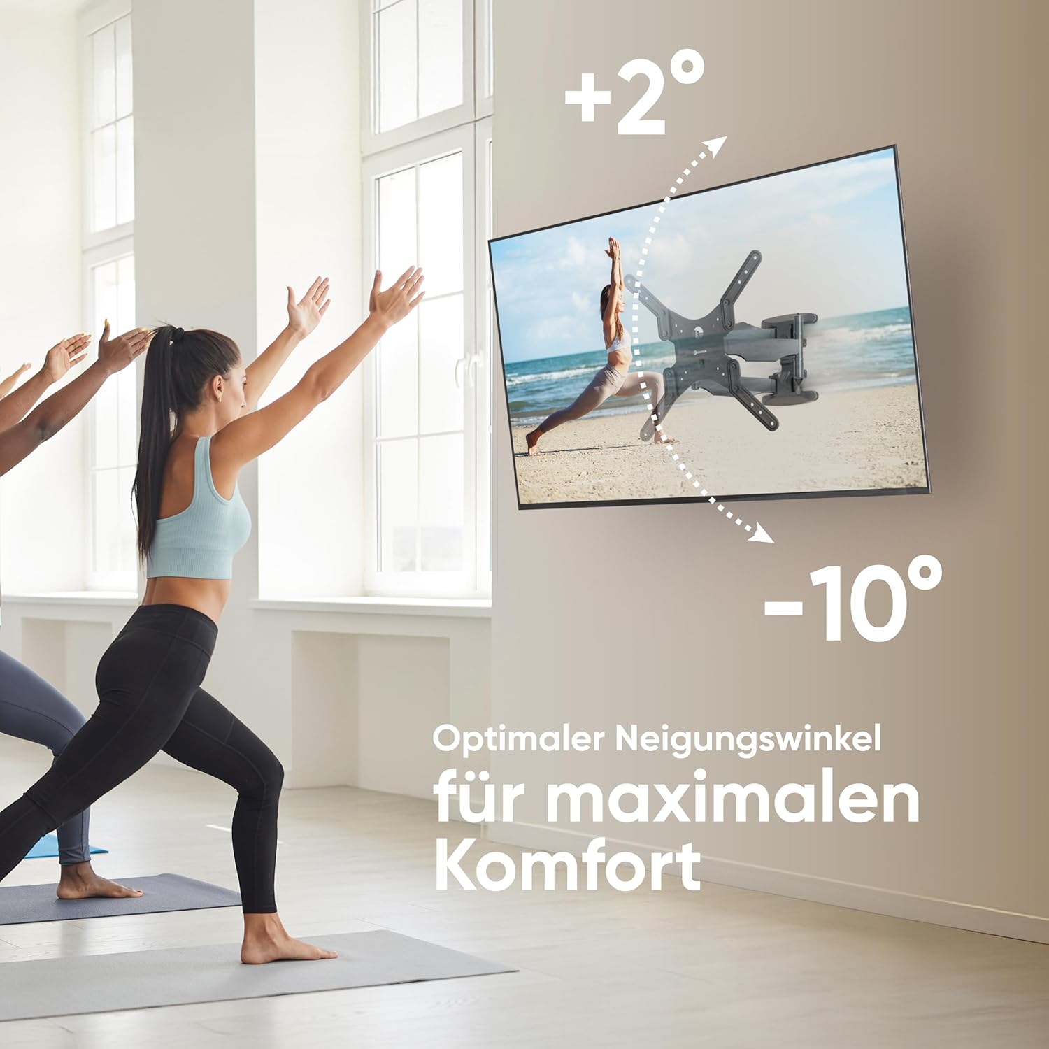 - BENUTZERFREUNDLICHKEIT DER WANDHALTERUNG | Dank der vielen Einstellmöglichkeiten können Sie den Fernseher so bequem wie möglich einstellen | Mit der Halterung können Sie den Zugang zum Fernseher für Kinder und Haustiere einschränken, das Risiko des