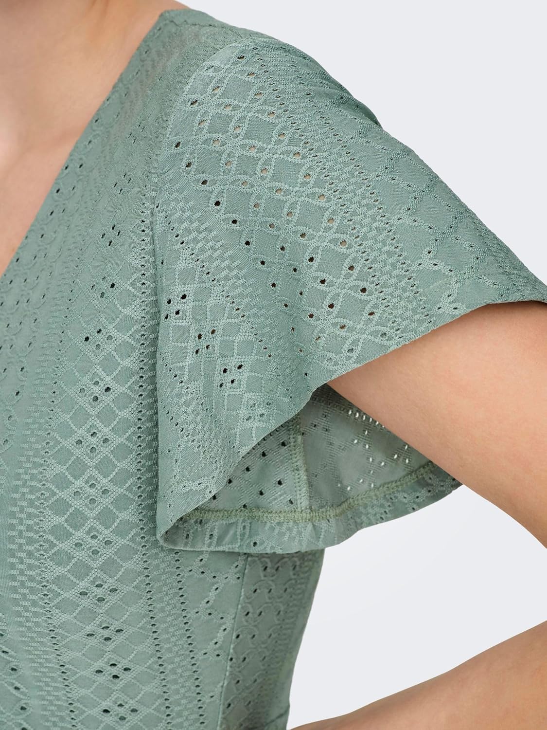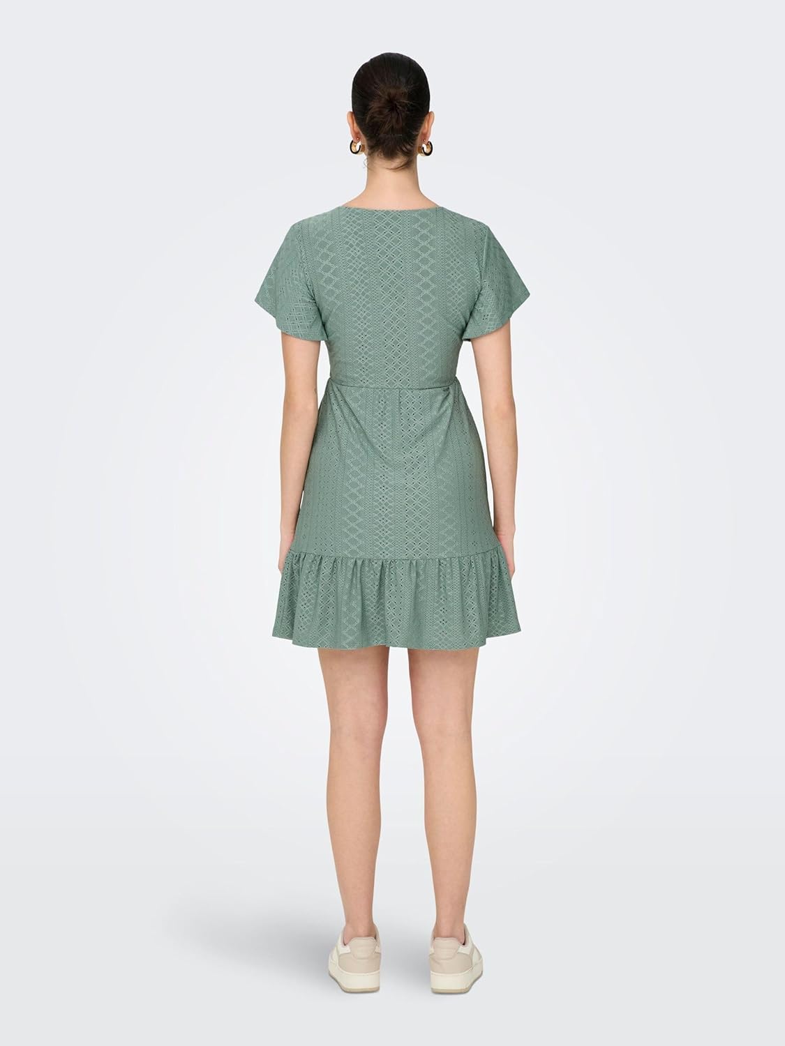 - Only, Langes Kleid, Jungendliche, Normal geschnitten, Abnäher in der Taille, Rüschen, V-Ausschnitt, Kurzarm