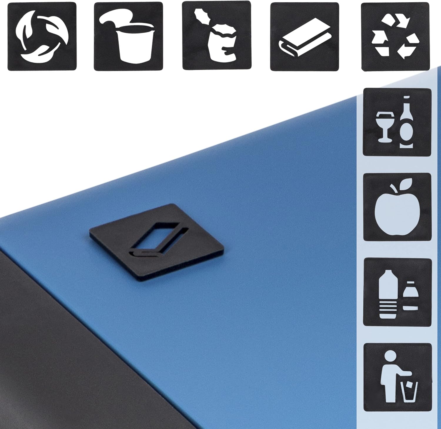 - Stabiler Müllsackhalter, der mit einem Deckel geschlossen werden kann. Der Deckel kann in den Farben Grün, Gelb, Blau oder Grau gewählt werden