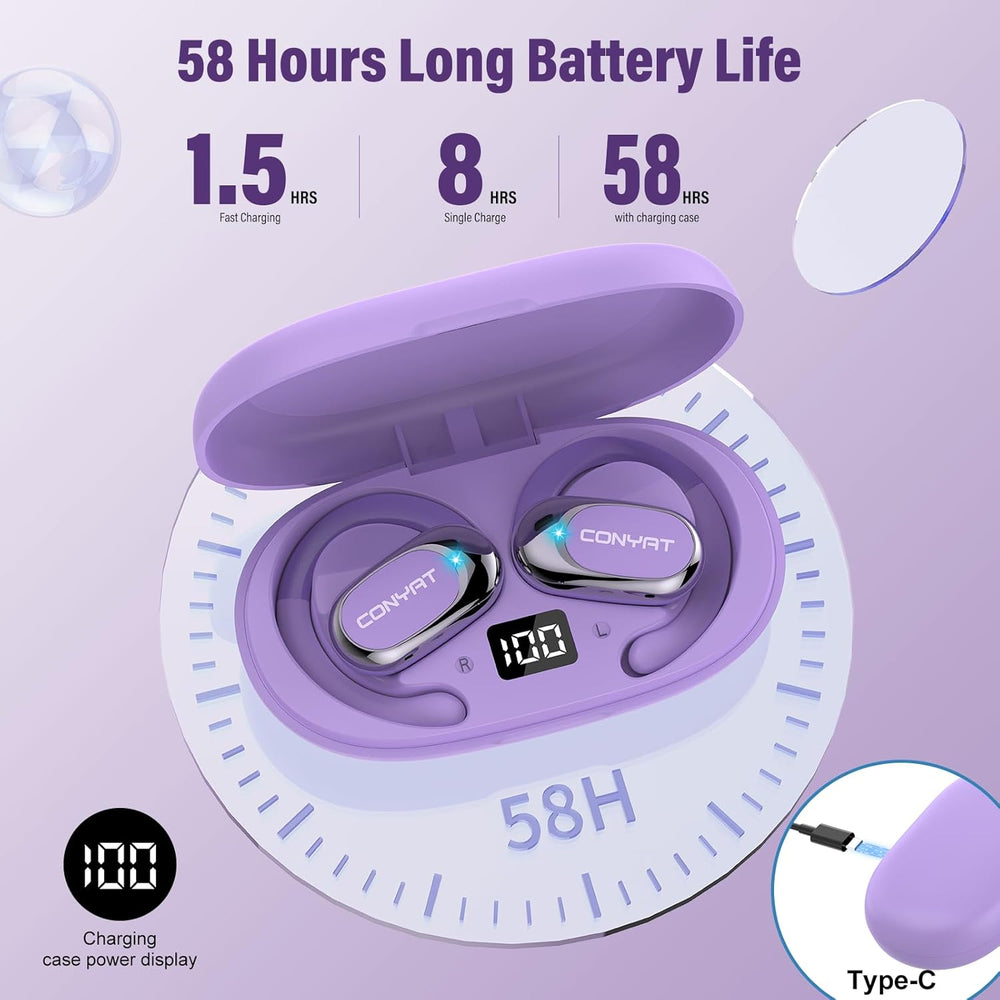 - 58 Stunden Spielzeit, LED-Anzeige, Musik hört nie auf: Die kabellosen Bluetooth-Kopfhörer mit offenem Ohr verfügen über eine LED-Anzeige, die den Akkustand des Ladeetuis und den Ladestatus der Ohrhörer deutlich anzeigt. Diese sportkopfhörer