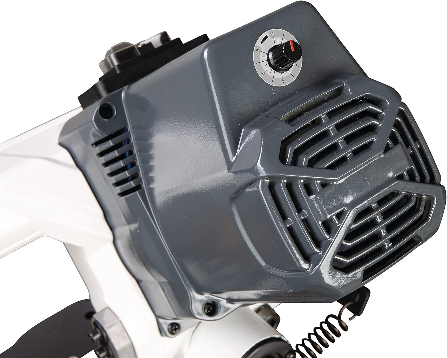 - Drucktaster am Hebelarm für den Sägebandlauf schaltet den Lauf des Sägebandes ein und aus