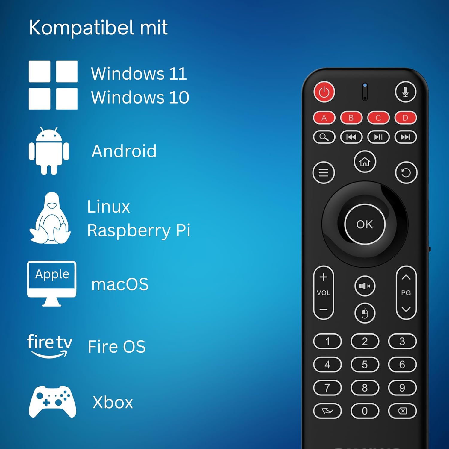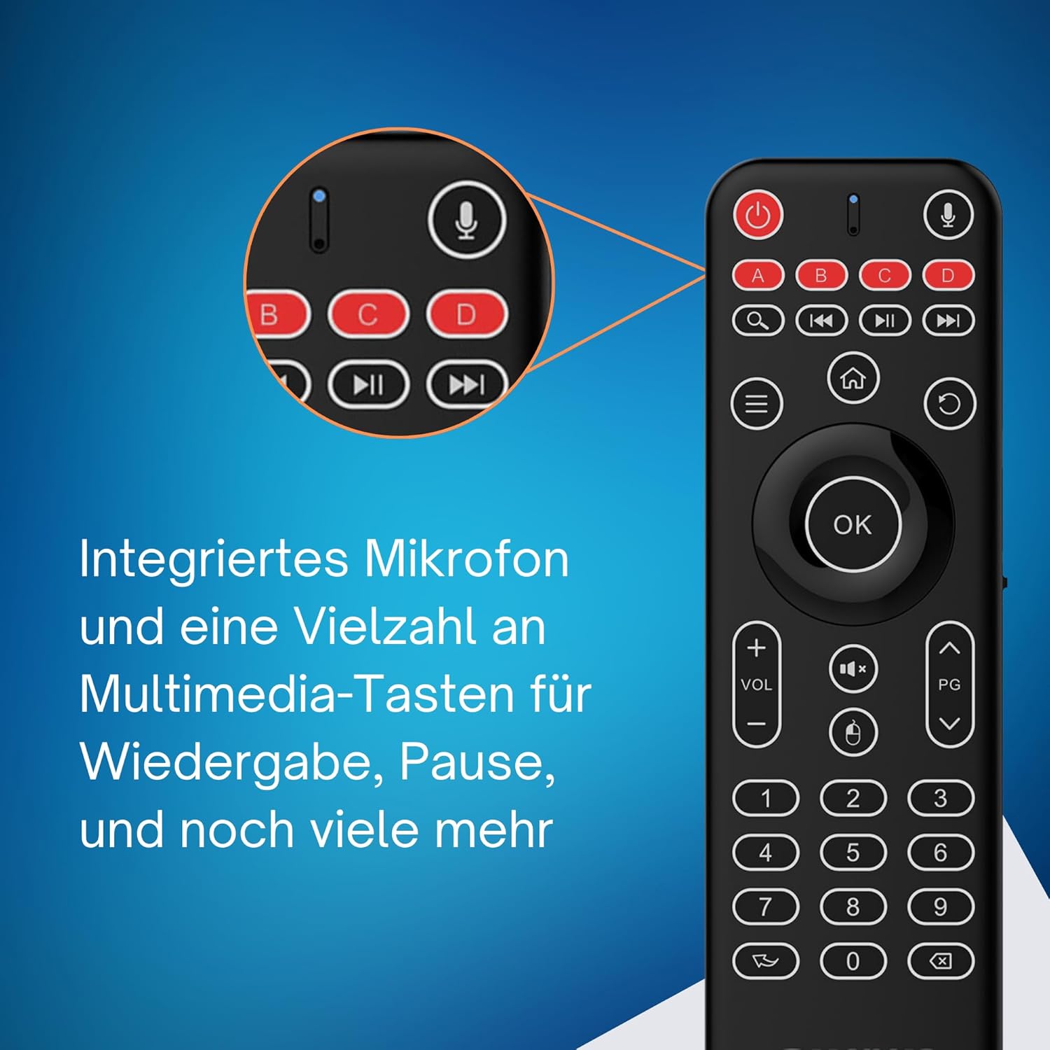 - Kabellose Airmouse mit rückseitiger deutscher Mini-Tastatur + LED-Beleuchtung + Mikrofon + Infrarot-Anlernfunktion