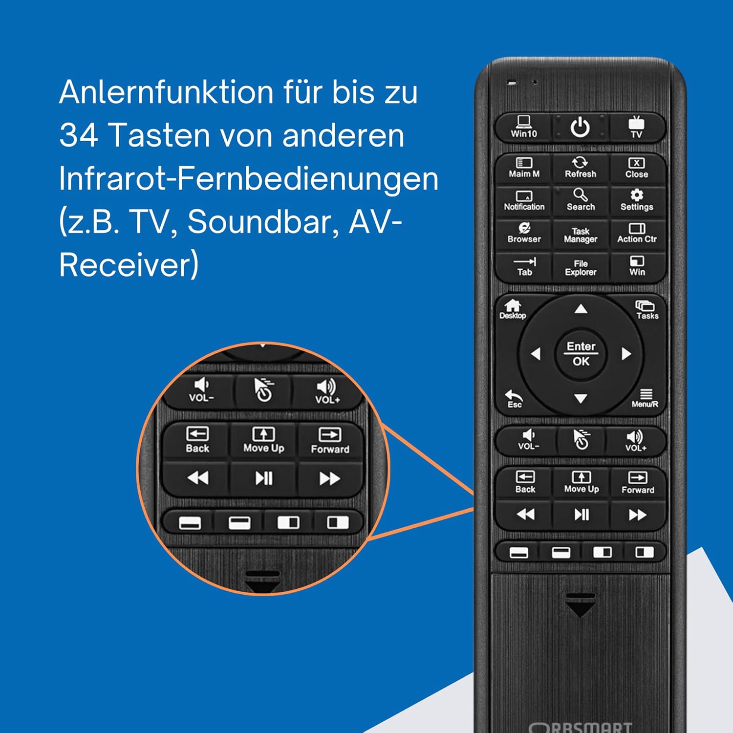 - Kabellose Windows 10/11 Airmouse mit rückseitiger Tastatur + Gyro-Sensor + Infrarot-Anlernfunktion
