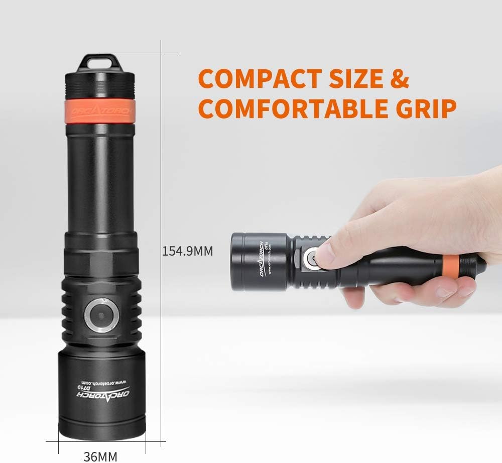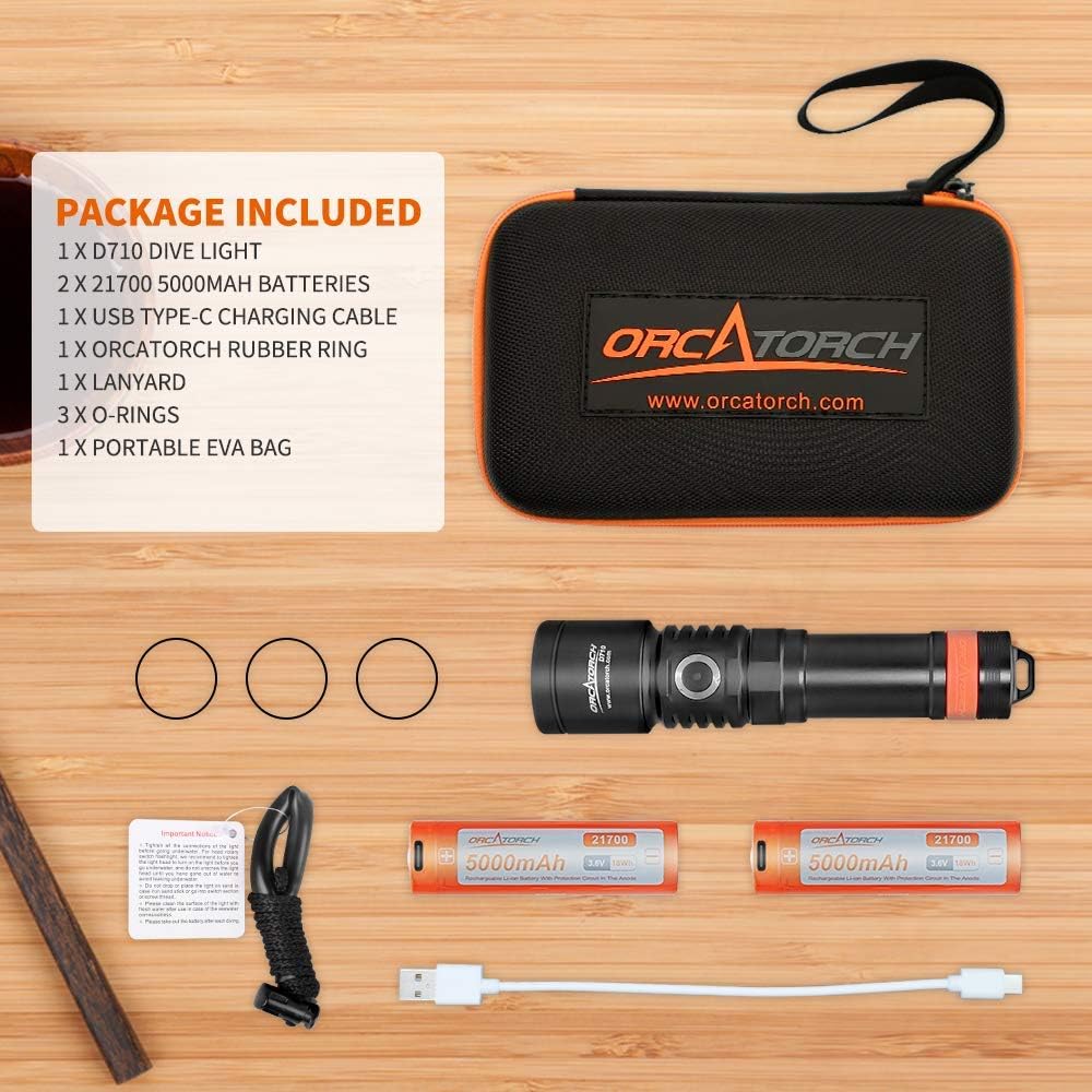 - Max. 3000 Lumen Tauchlampe - ORCATORCH D710 ist eine kompakte und helle Tauchlampe, die für Sporttauchen, technisches Tauchen, Höhlentauchen und Wracktauchen weit verbreitet ist. Mit dem Luminus SST-70-Emitter liefert die D710-Tauchlampe maximal 3000