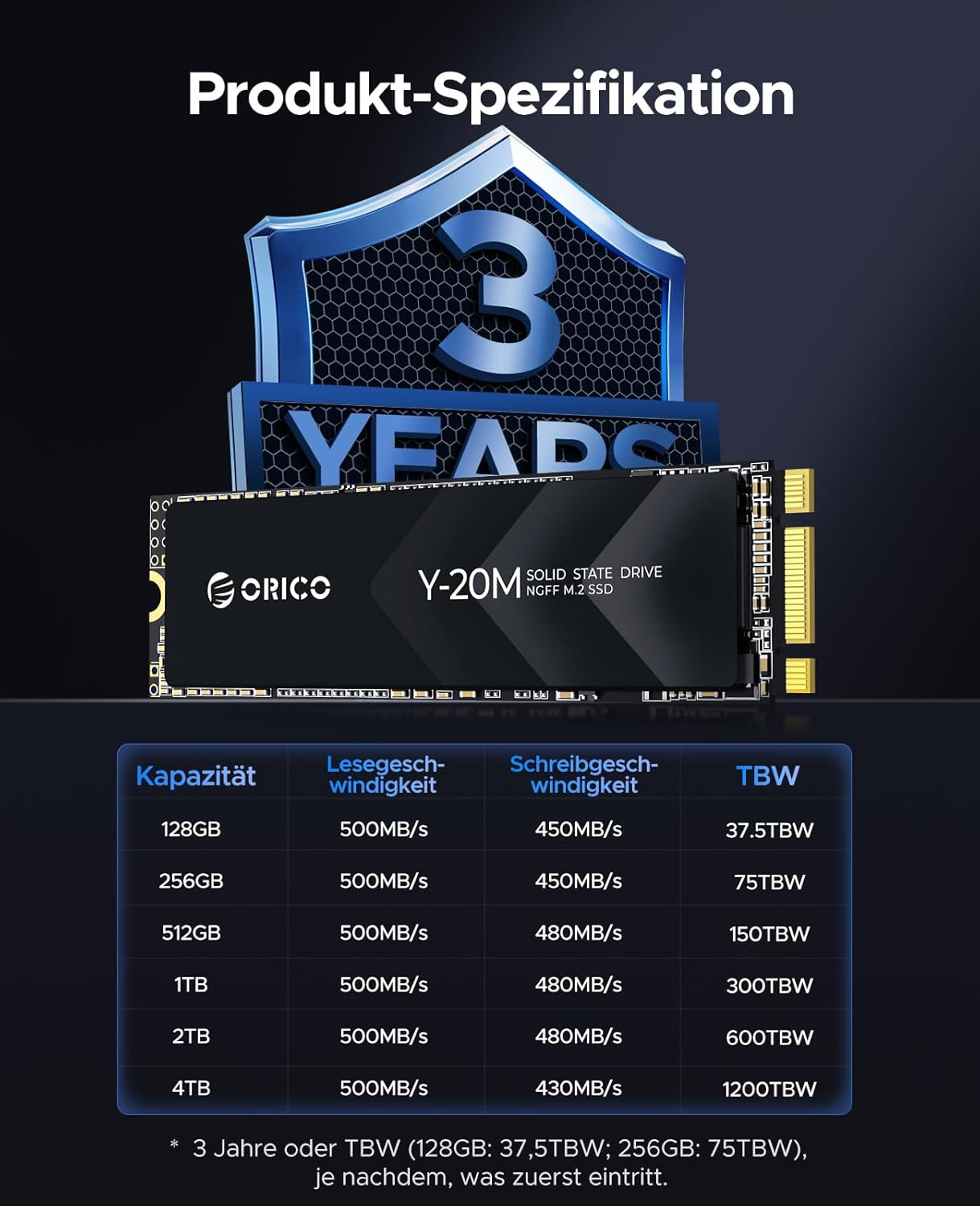 - Blitzschnelle Leistung: Die ORICO M.2 SATA SSD 2280 rühmt sich einer beeindruckenden sequentiellen Lesegeschwindigkeit von bis zu 500MB/s und einer sequentiellen Schreibgeschwindigkeit von bis zu 480MB/s, was sie 5x schneller macht als herkömmliche