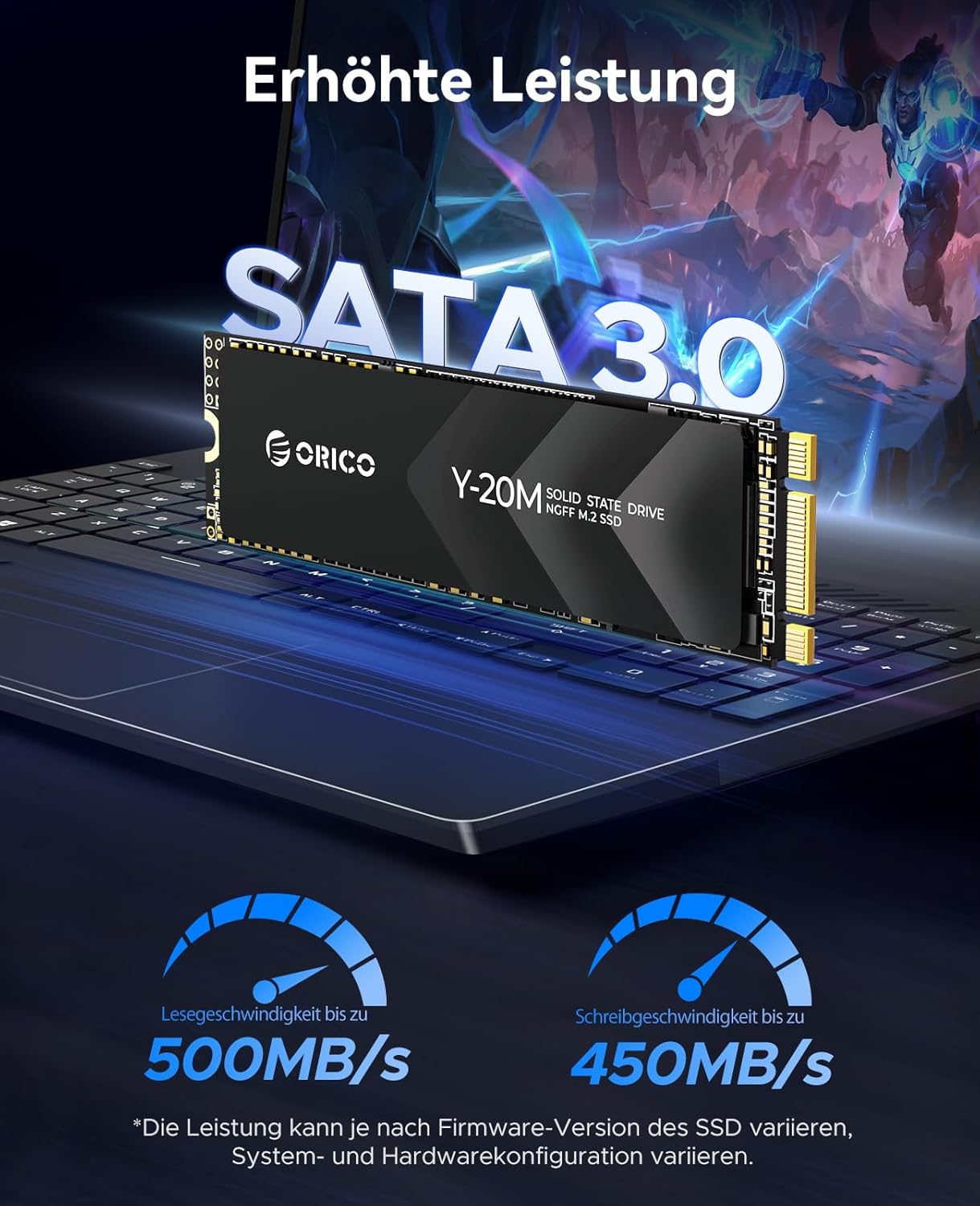 - Blitzschnelle Leistung: Die ORICO M.2 SATA SSD 2280 rühmt sich einer beeindruckenden sequentiellen Lesegeschwindigkeit von bis zu 500MB/s und einer sequentiellen Schreibgeschwindigkeit von bis zu 450MB/s, was sie 5x schneller macht als herkömmliche