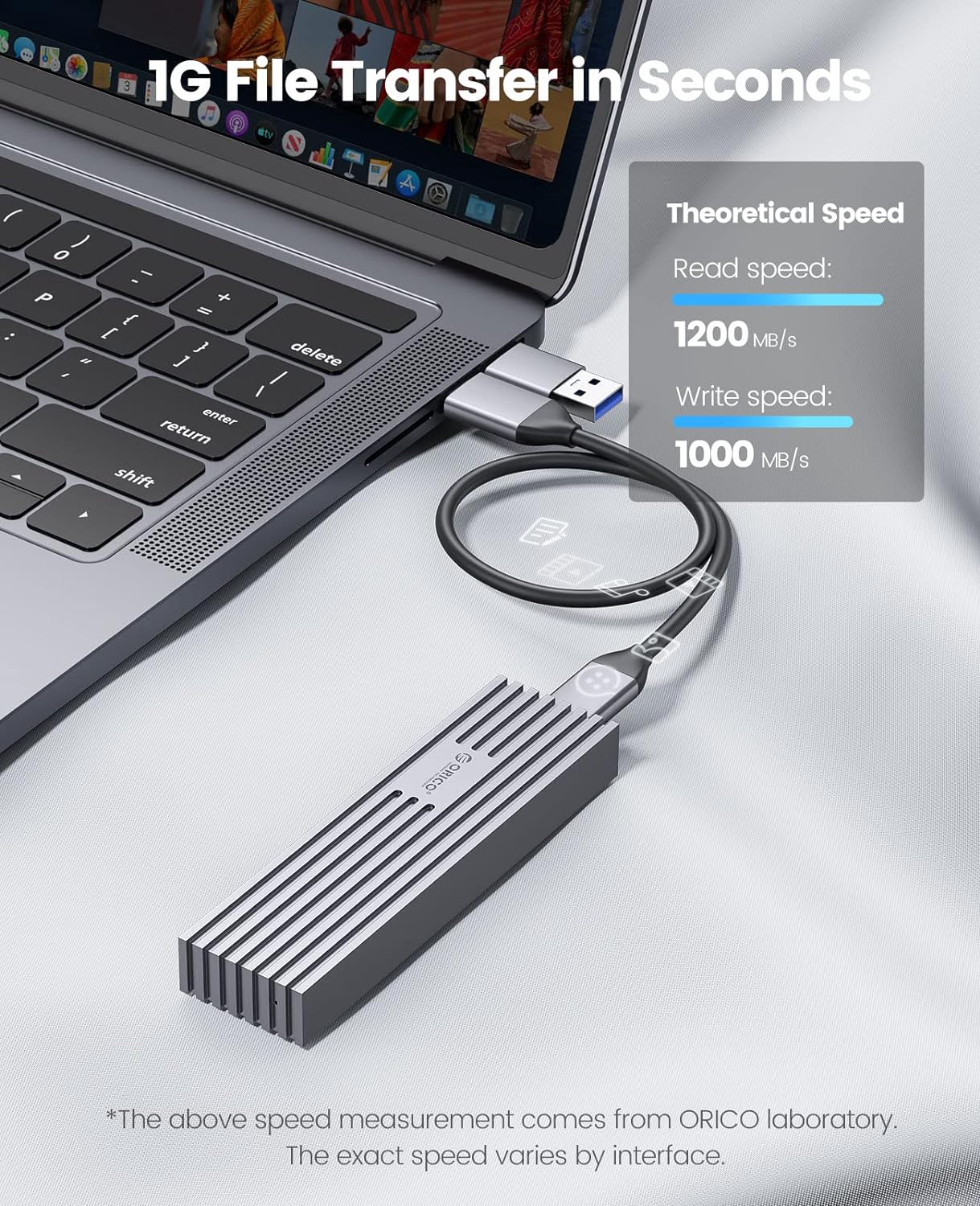 - 【Hohe Qualität + Smart】 ORICO M.2 NVMe auf USB verfügt über integrierte intelligente Mikrochips und mehrere Schutzsysteme, unterstützt UASP-Beschleunigungsprotokoll und Trim, SMART-Funktionen, 10-minütiger Smart-Sleep, verbessert effektiv die