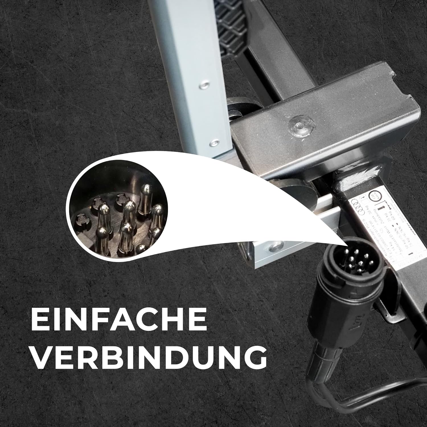 - BITTE BEACHTEN – Der abklappbare Audi-Fahrradträger sollte nur in Verbindung mit Stahl-Anhängervorrichtung genutzt werden und ist nicht für Alu-Anhängevorrichtung geeignet.