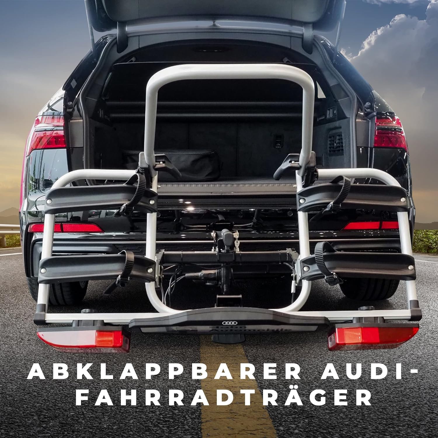 - HOHE TRAGLAST – Original Audi Fahrradträger für Stahl-Anhängervorrichtung mit einer maximalen Traglast bis zu 60kg für bis zu zwei Fahrräder.