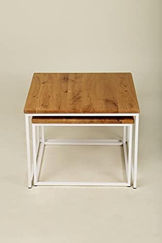 - Als Krönung und wichtiges Kontrastelement zum Stahl, kommt ausschliesslich edle massive Eiche (Hell Natur) als Tischplatte zum Einsatz. Die massiven Platten 60x60cm und 54x54cm aus edler Wildeiche sind mit Hartwachsöl geölt..