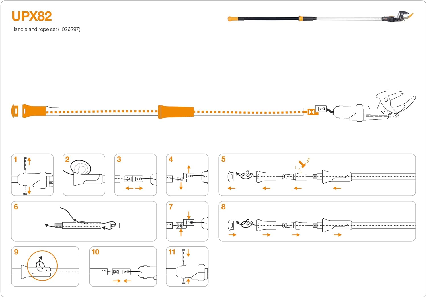 - Lieferumfang: 2x Ersatzgriff, 1x Seilsystem, Für Fiskars Bypass Teleskop-Schneidgiraffe UPX82, Farbe: Schwarz/Orange, 1026297
