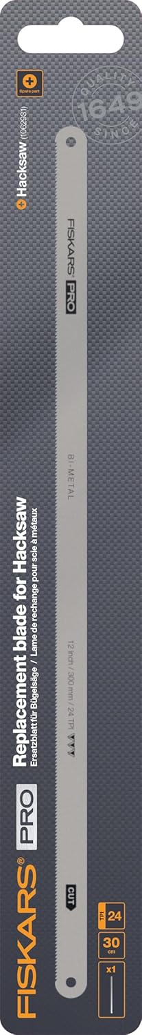 - Lieferumfang: 1x Original Fiskars Pro Ersatzblatt für TrueTension-Bügelsäge (1062931), Sägeblattlänge: 30 cm, 24 TPI, Bimetall, 1062941