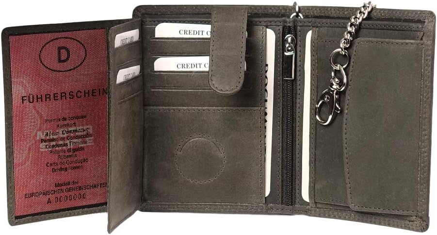 - Ihre Vorteile: Hochwertiges Vinatge Leder - Echtleder zum attraktiven Preis, attraktives Design, viel Ausstattung, geprüfte Qualität! Das Portmonee mit Kette wird mit Geschenkbox ausgeliefert und bildet somit eine schönes Geschenk für Männer, Herren