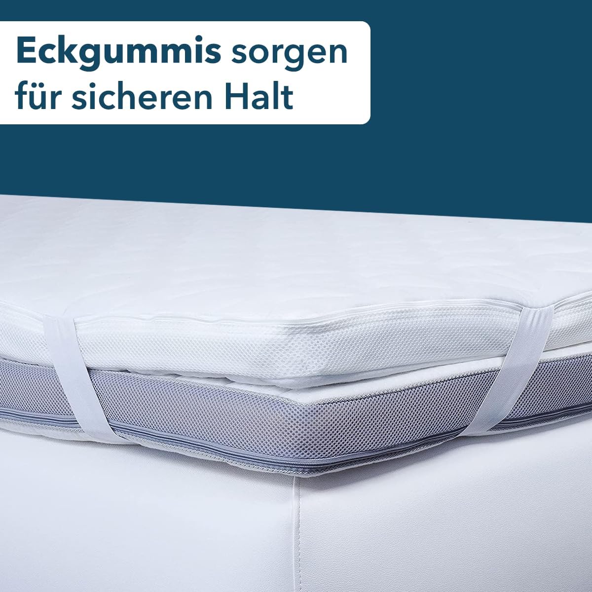- KEIN VERRUTSCHEN MIT DEN ECKGUMMIS – Durch die Eckgummis an den Seiten lässt sich der Matratzenschoner in Sekundenschnelle an der Matratze befestigen. Lästiges Rutschen während des Schlafs wird durch die Anbringung verhindert. Der Matratzen Topper