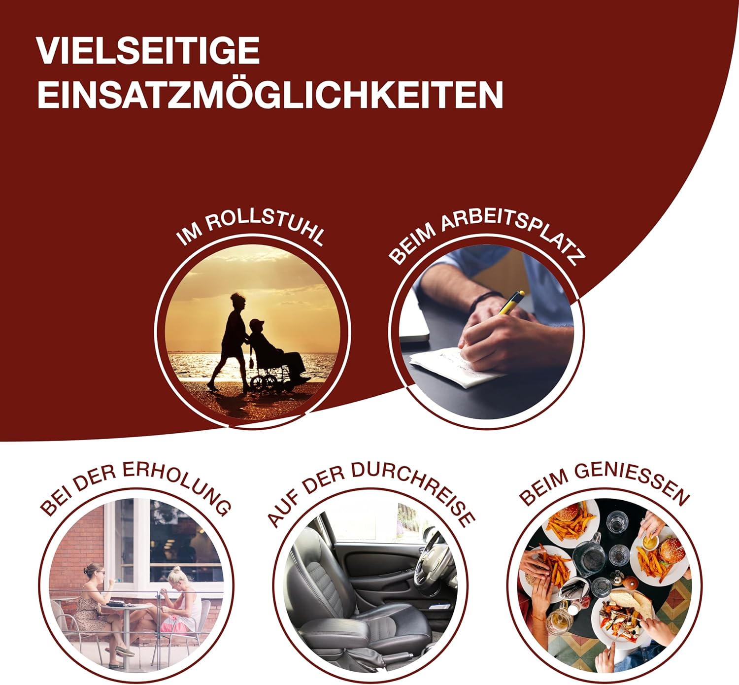 • ✅ VIELSEITIG: Passend für Büro-/Küchenstuhl, Couch, Rollstuhl, Auto oder bei Bedarf auch als praktische Sitzerhöhung. Die Anti-Rutsch-Unterseite sorgt für einen festen Halt und verhindert ein ungewolltes Verschieben des Sitzkissens.