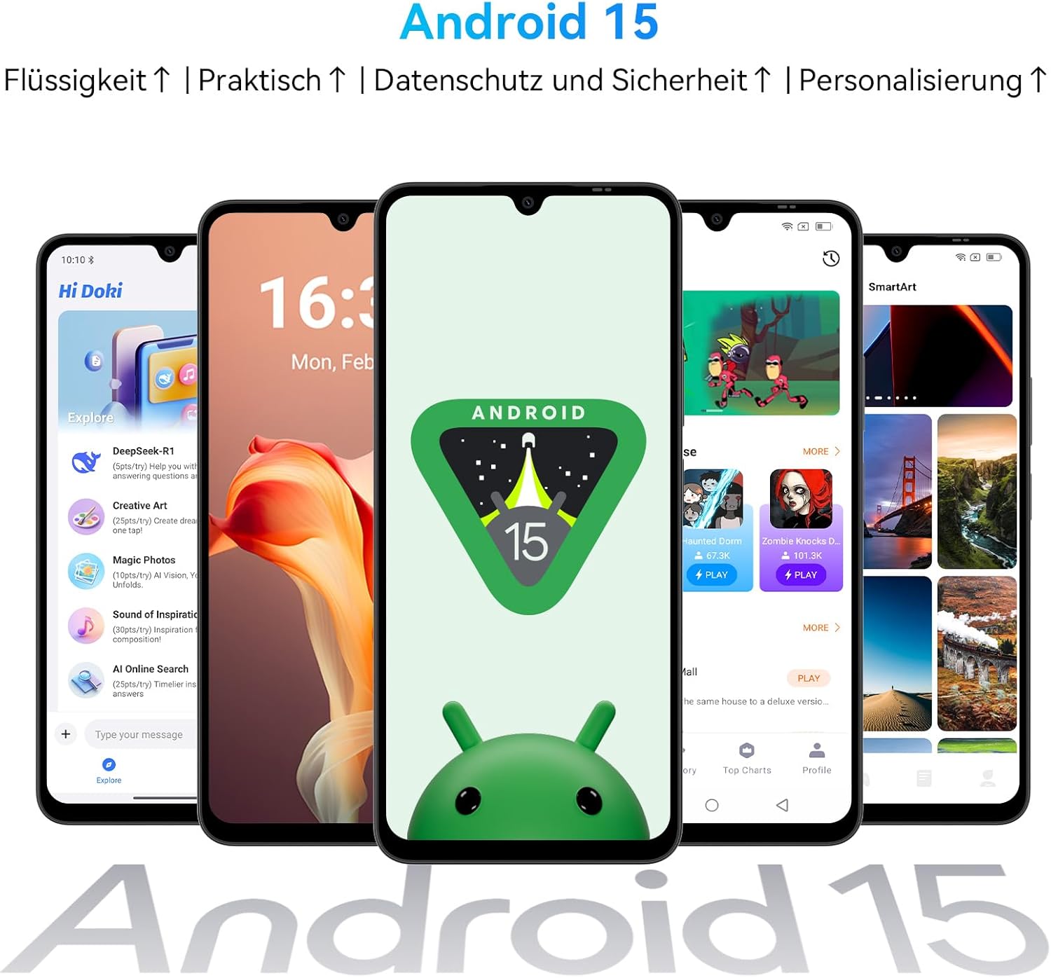 • 🏆【Android 15 + Intelligente KI-Funktionen · Effizient und komfortabel】Das OSCAL TIGER 8 5G Smartphone ohne vertrag integriert fortschrittliche KI-Engines wie DeepSeek, ChatGPT und Gemini. Per Sprachbefehl aktivieren Sie ganz einfach den