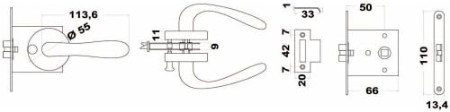 Osculati Einsteckschloss einfach Messing verchromt 68x60x9mm