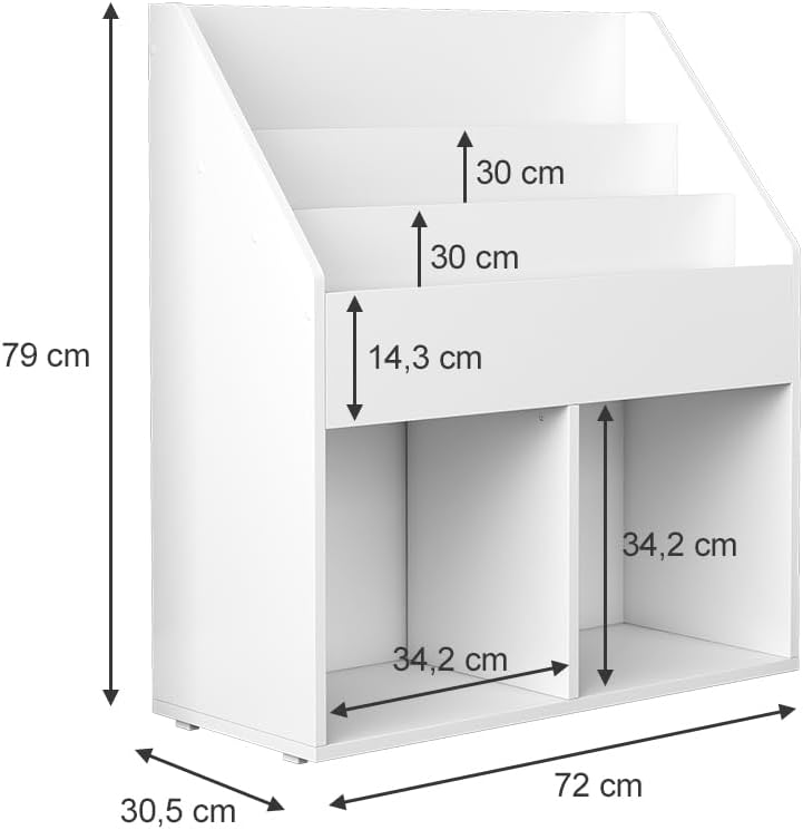 - PRODUKTMAssE: Unser Aufbewahrungsregal hat kompakte Abmessungen von 72 x 79 x 30,5 cm (BxHxT) und ein leichtes Gewicht von nur 14,1 kg. Perfekt für das Kinderzimmer und einfach zu handhaben.