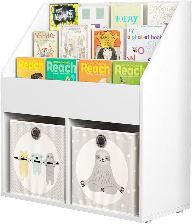- Organisieren Sie das Spielzeug Ihres Kindes mühelos mit unserem Spielzeugregal. Drei geräumige Ablagefächer bieten Platz für Spielzeug, während zwei grosse Fächer perfekt für Faltboxen sind.