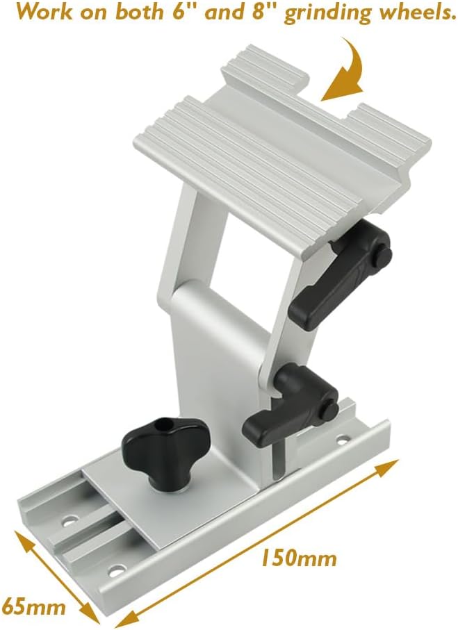 • Will work with both 6” and 8” diameter grinders and belt sanders with 1” wide wheel or belt