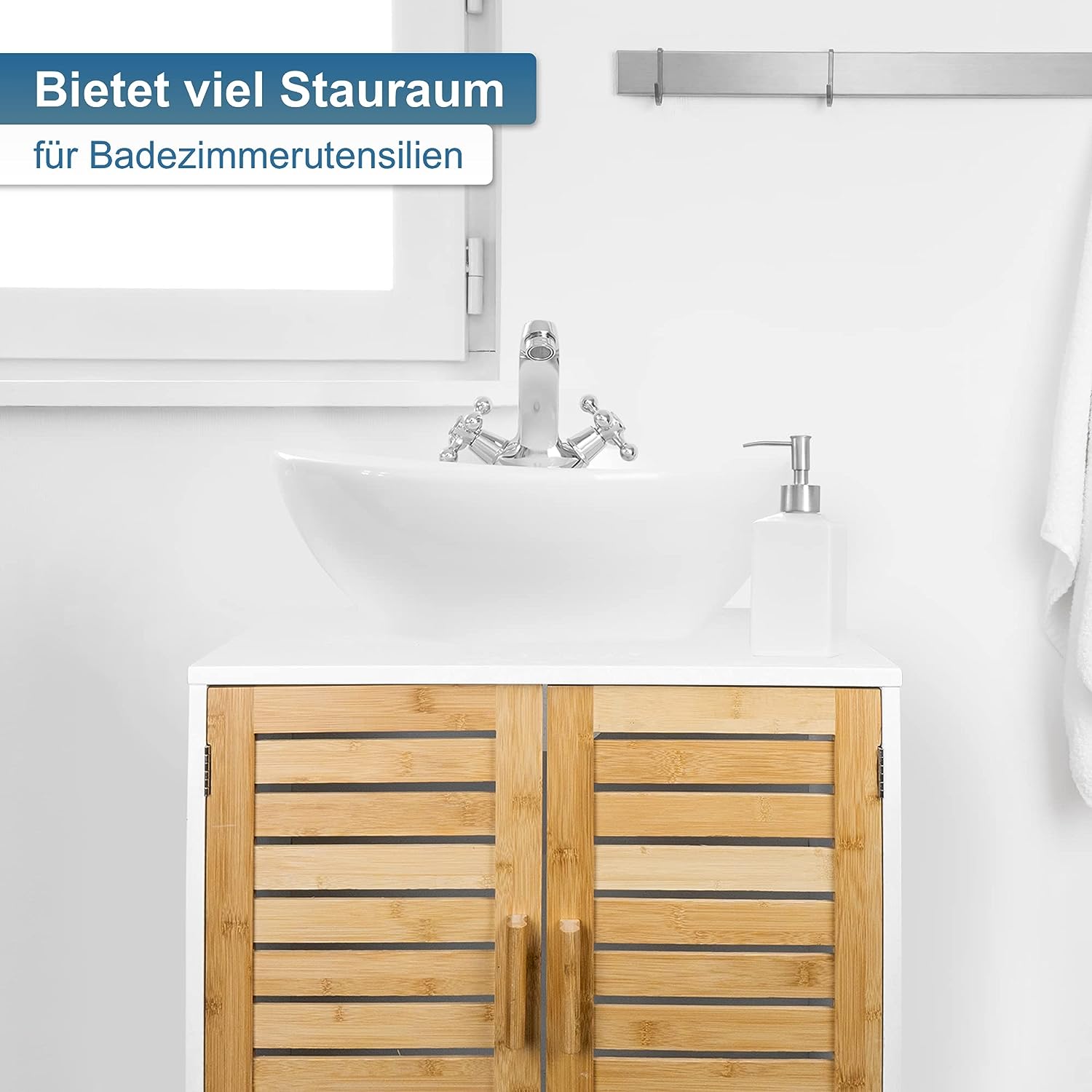 - โ ๐๐๐๐๐๐๐๐๐๐๐ ๐๐๐๐๐๐: Hinter den 2 Tรผren aus massivem Bambus besteht Stauraum fรผr Shampoo, Toilettenpapier, Putzmittel oder Badetรผcher. Dank der Tรผren ist immer alles blickdicht verstaut