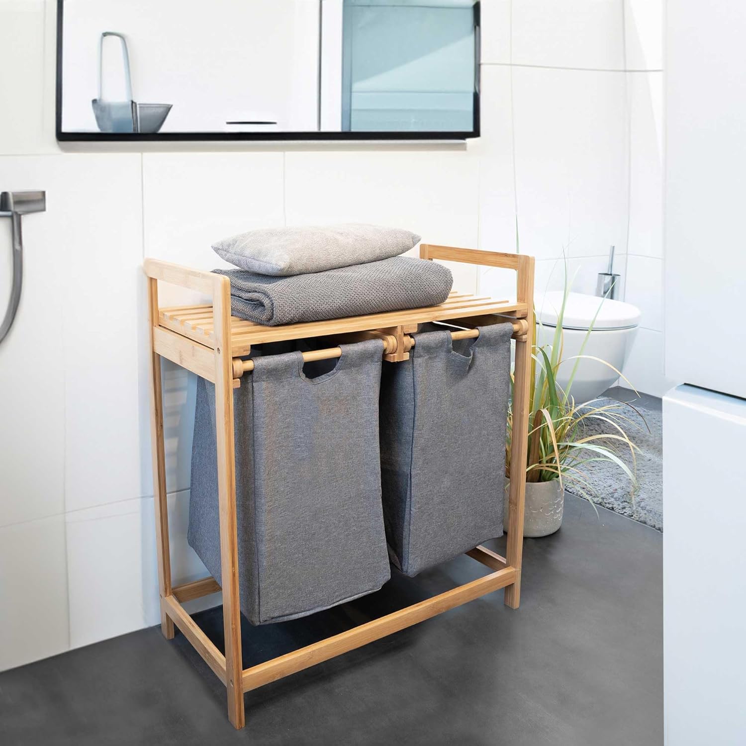 • ✅ Massiv Holz Bambus Wäschesortierer mit zwei Fächern. Der Wäschesortierer ist schnell aufgebaut, die Wäsche kann leicht sortiert werden.