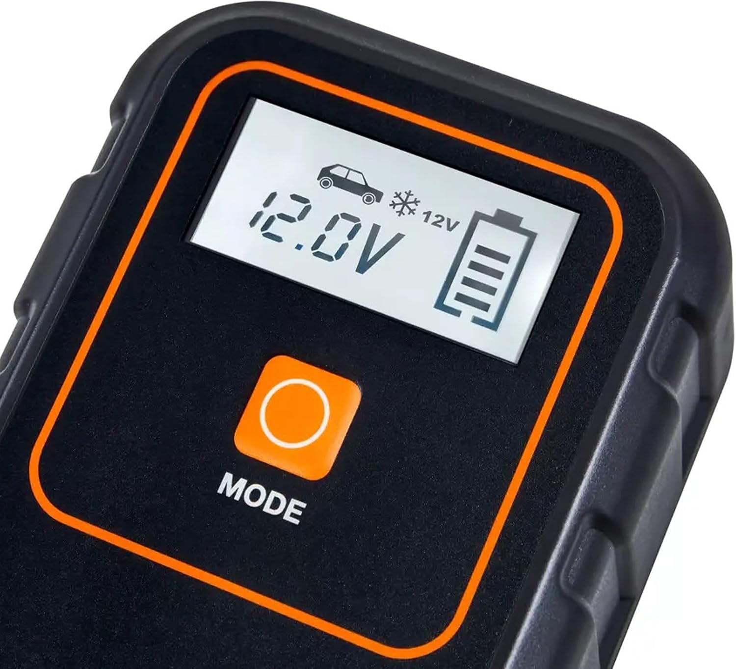 • Schliessen Sie es an und stellen Sie sicher, dass das Ladegerät die Autobatterie wartet, da es automatisch in den Langzeitwartungsmodus wechselt, wenn die Batterie voll ist. Mit digitaler Anzeige für einfaches Laden und einer Reihe von