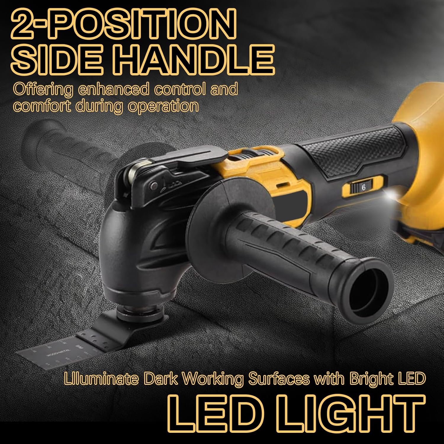 - 6-stufige Geschwindigkeitsregelung: Das Multifunktionswerkzeug verfügt über 6 einstellbare Geschwindigkeitsstufen mit Oszillationsfrequenzen von 8.000 bis 20.000 U/min. Perfekt anpassbar für verschiedene Anwendungen wie Schneiden, Schaben, Schleifen