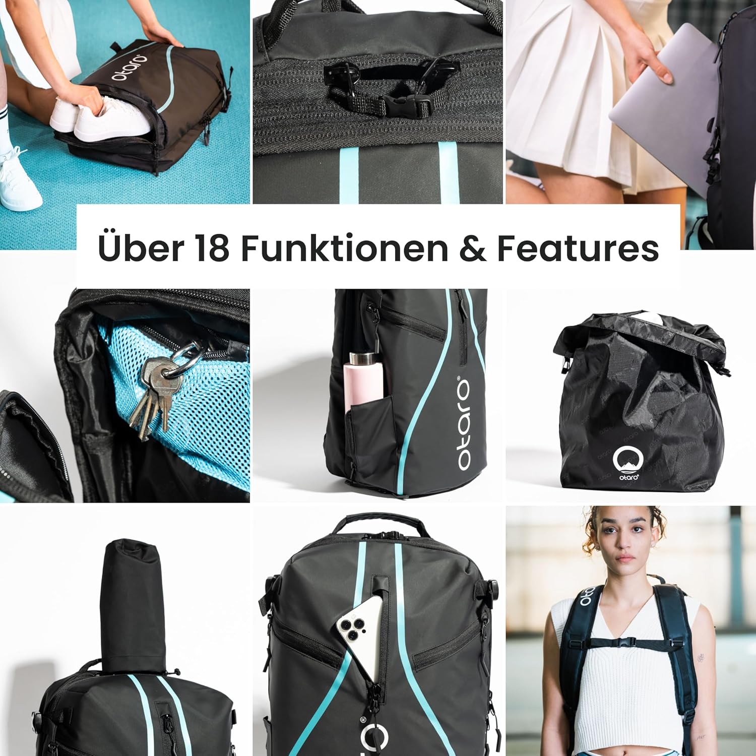 - ✅ EXTRA ZUBEHÖR – Neben der Schutzhülle für die Griffe deines Tennisschlägers umfasst der Lieferumfang unseres Tennisrucksack auch einen Schmutzbeutel. Hier kann die schmutzige Wäsche direkt nach deinem Tennismatch verstaut werden.