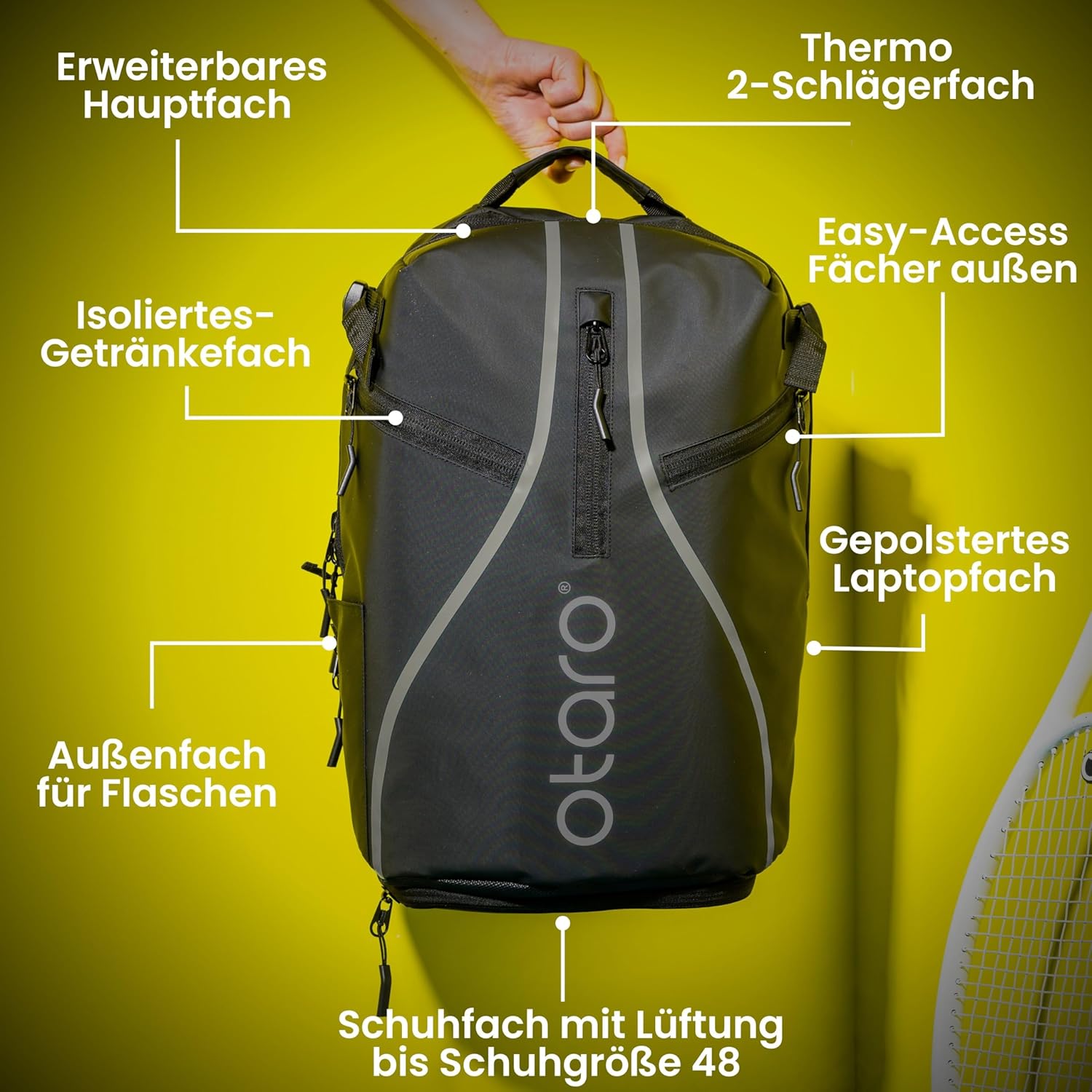 - ☀️❄️ THERMOISOLIERT – Unsere Tennisrucksäcke sind mit einem thermoisolierten Schlägerfach mit Platz für zwei Schläger und einem thermoisolierten Getränkefach ausgestattet.