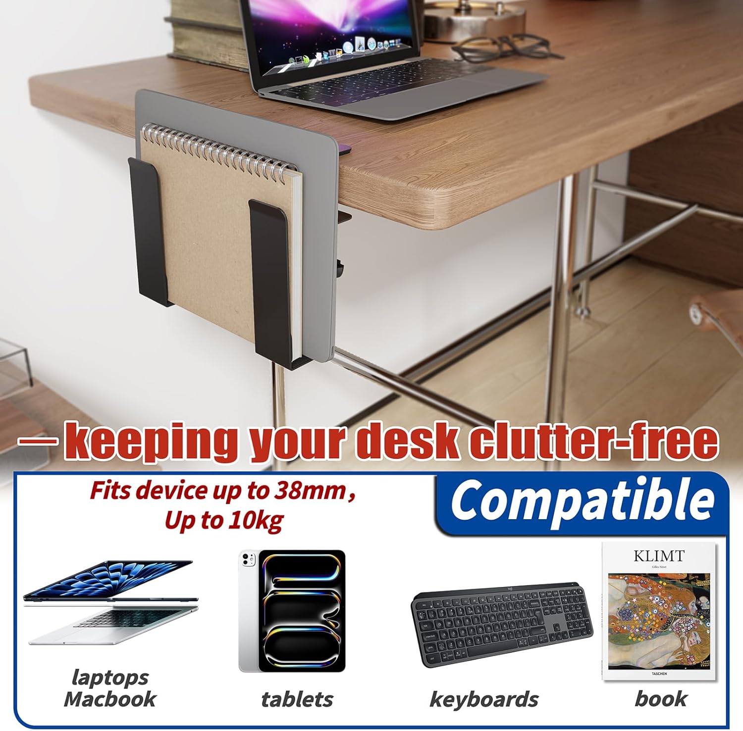 - Erweiterbarer Laptop- und Gerätehalter – Perfekt für die Aufbewahrung von Laptops, Tablets und Tastaturen bis zu einer Dicke von 38mm. Kompatibel mit MacBook, Lenovo, HP, Dell, ASUS und anderen gängigen Marken. Flexibel und anpassungsfähig für