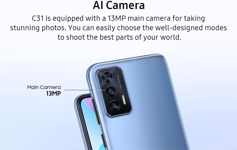 - ★【AI-Kamera:】Das C31 ist mit einer 13MP-Hauptkamera auf der Rückseite ausgestattet, mit der Sie erstaunliche Fotos aufnehmen können. Sie können ganz einfach die gut durchdachten Modi auswählen, um die besten Teile Ihrer Welt aufzunehmen. Mit