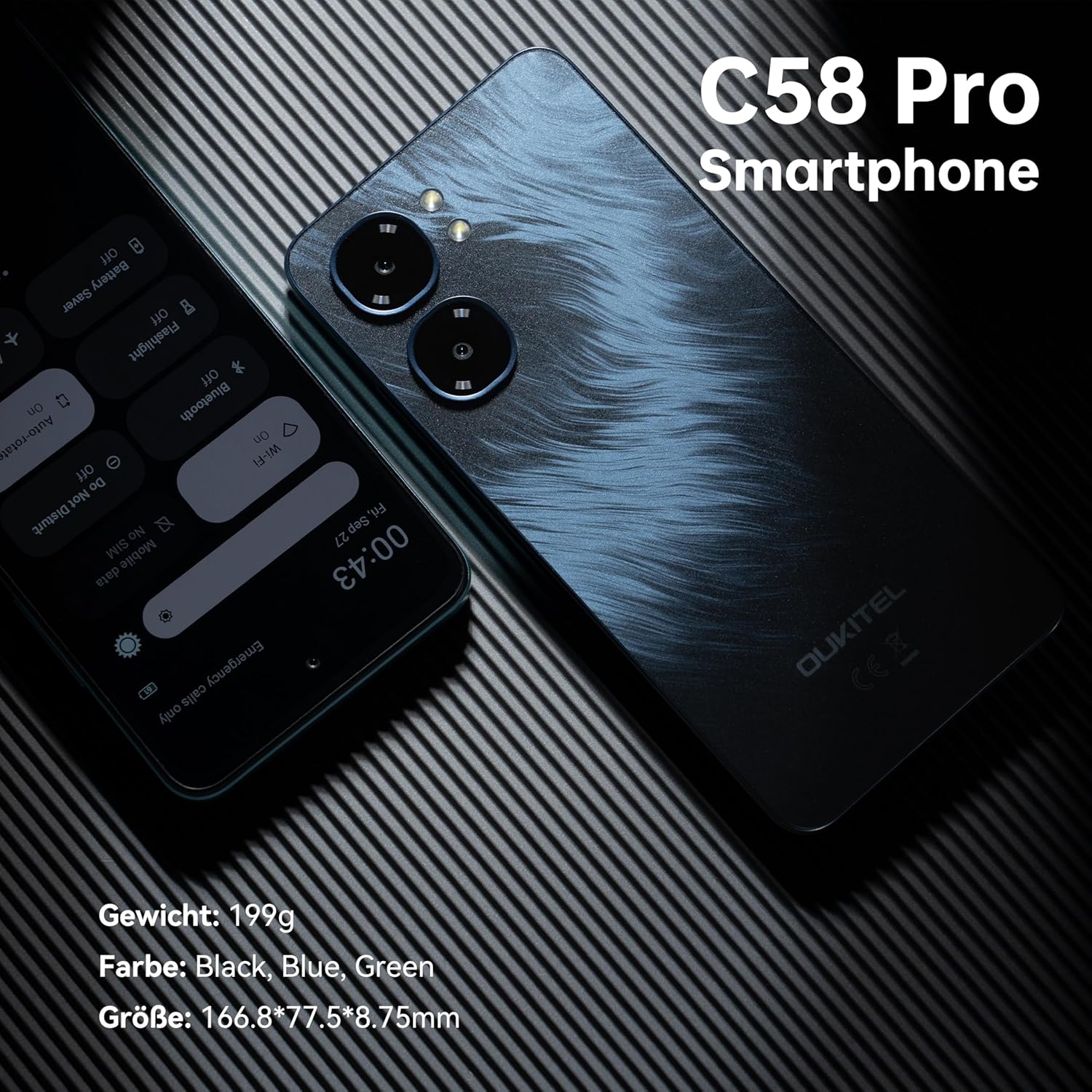 - 【24 GB RAM + 256 GB ROM- und Octa-Core-Prozessor】 Dank der Speicherausdehnungstechnologie erhöht das C58 Pro Android smartphone ohne vertrag den RAM von 6 GB auf eine virtuelle 24 GB und verbessert die Ausführungsgeschwindigkeit um 50 Prozent.