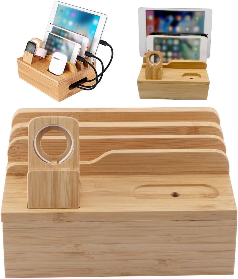 Oumefar Bambus-Ladestations-Rack für mehrere Geräte, Speicherladedockstation und Organizer für Mobil