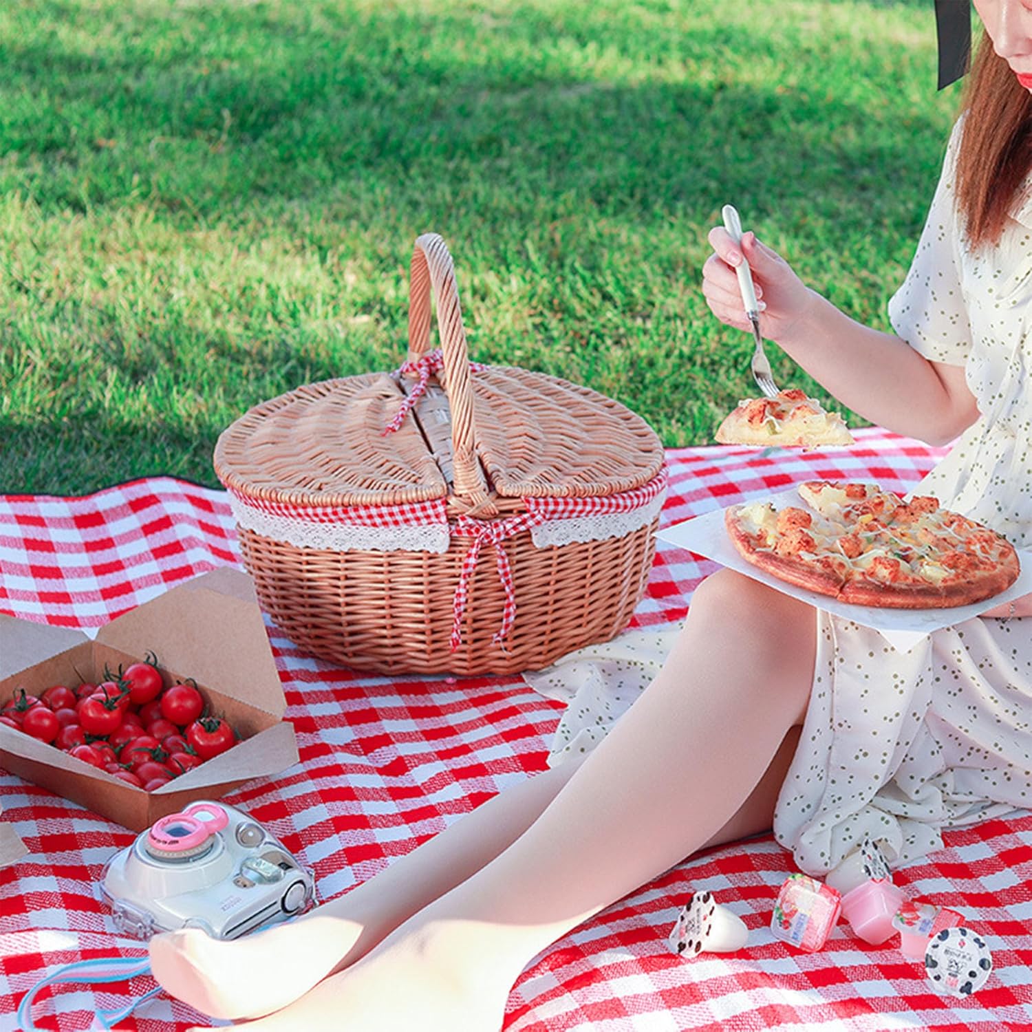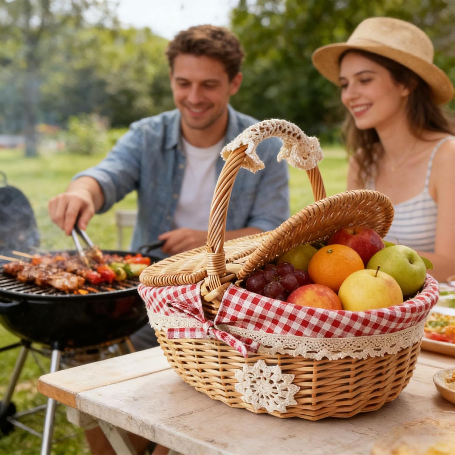 - Porosität - Dank seines einzigartigen gewebten Designs bietet der Korb Atmungsaktivität. Dies hilft, die Frische Ihrer Lebensmittel zu erhalten, Obst bleibt saftig und Gebäck bleibt während des Picknicks flauschig.