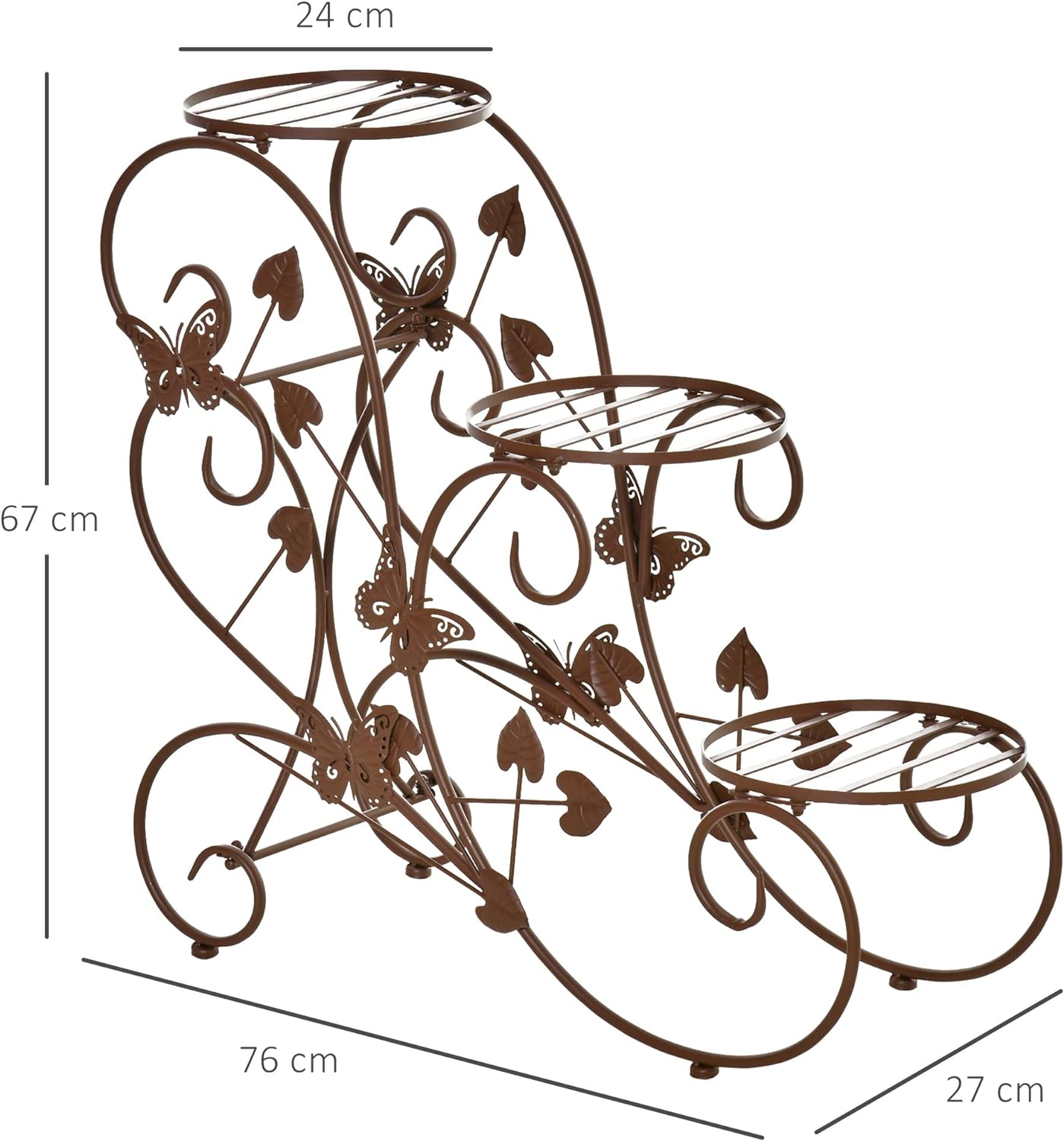 Outsunny Blumenständer, Pflanzenregal, Dreistufiger Blumenstand, Blumentreppe im französischem Stil,