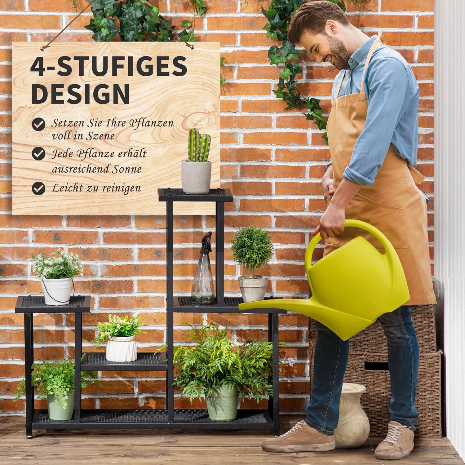• 4 Ebenen: Blumenständer mit 4 Regalen eignet sich ideal für den Anbau auf begrenzten Flächen wie Balkone, Veranden, Terrassen usw. Dank der unterschiedlichen hohen Regale erhält jede Pflanze ausreichend Sonnenlicht.