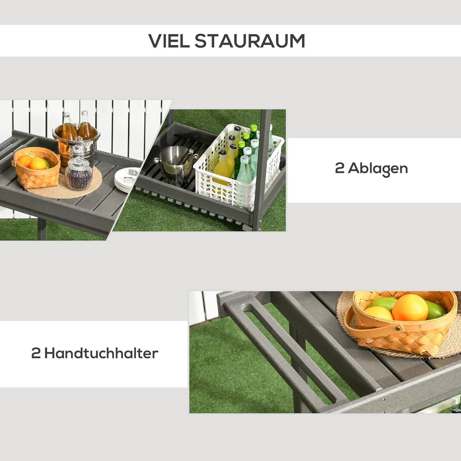 Outsunny Servierwagen, Barbecue Trolley mit Handtuchhalter, Garten Rollwagen mit 2 Regalen, Outdoor