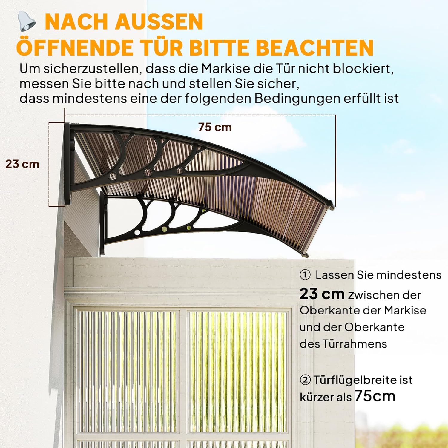 - Das Vordach muss selbst an einer festen Wand installiert werden, oder lassen Sie es von einem Fachmann installieren