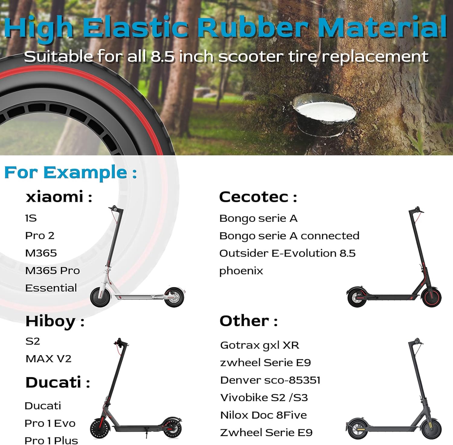 - Neuestes Design 2022: - Dies ist ein Vollgummireifen, der speziell für 8,5-Zoll-Elektroroller entwickelt wurde. Es verwendet eine neue Art von Texturdesign, das die Rutschfestigkeit optimiert und die Haftfähigkeit verbessert. Leichte