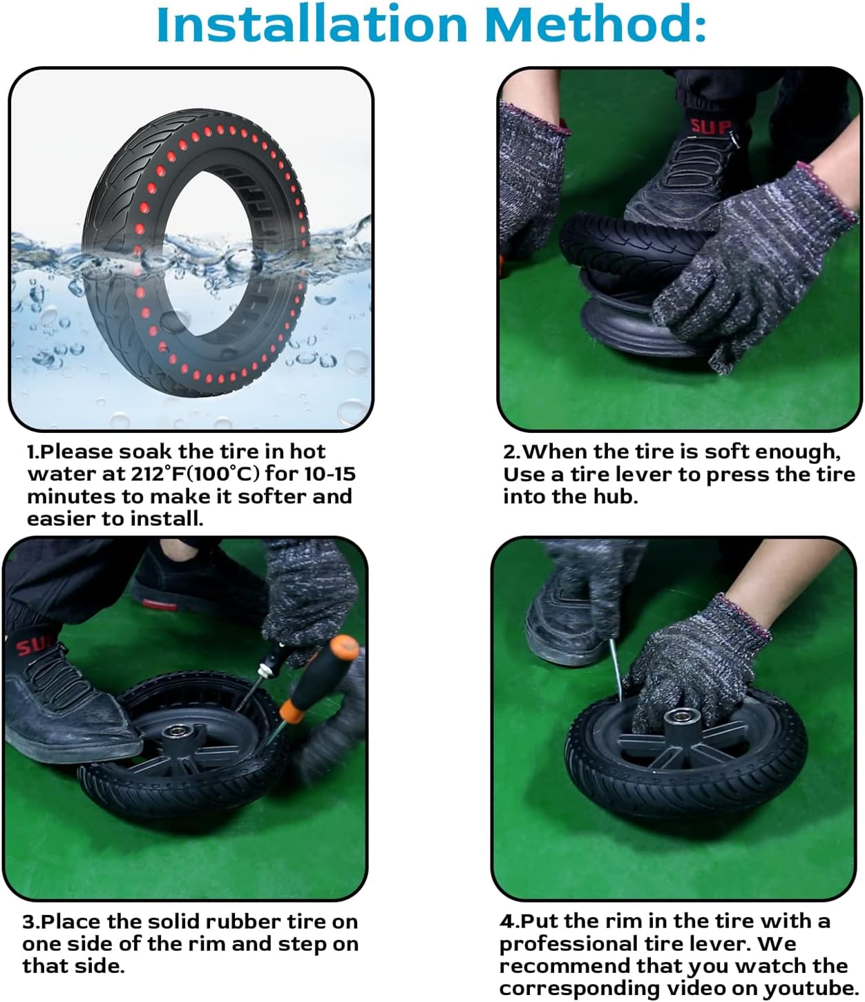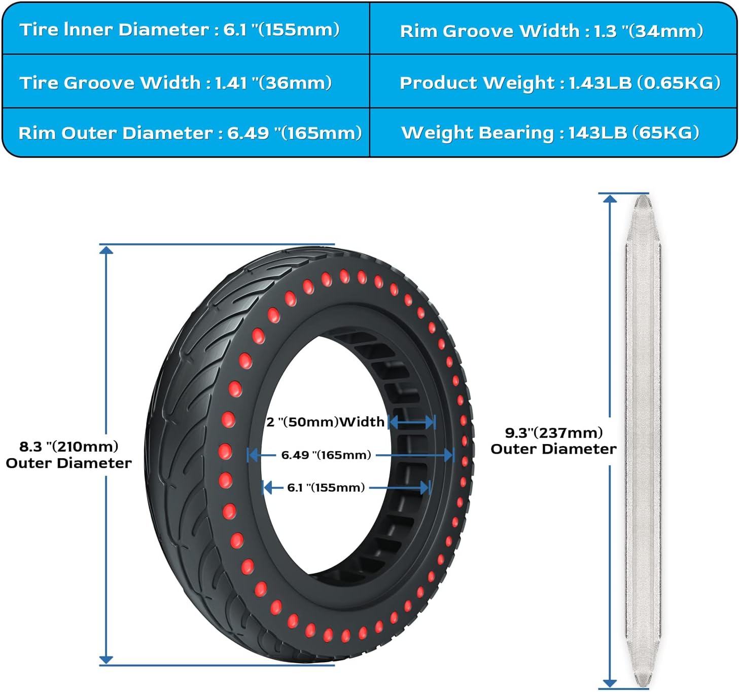 - Hervorragende Kompatibilität: - Dieser Gummireifen benötigt keine Luft, kein Aufpumpen, keine Reparatur, keine Wartung, kein Bohren und keinen Schlauch, sodass Sie sich keine Sorgen um Verbrennungen machen müssen. Der Aussendurchmesser beträgt 8,25