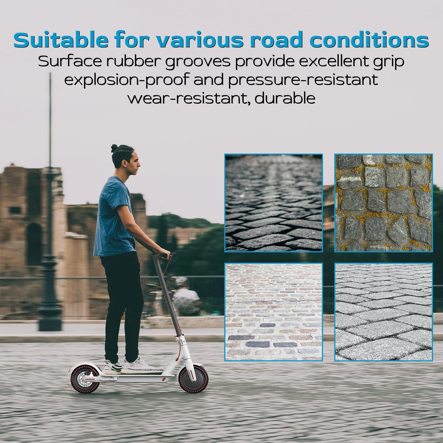 - Neuestes Design 2022: - Dies ist ein Vollgummireifen, der speziell für 8,5-Zoll-Elektroroller entwickelt wurde. Es verwendet eine neue Art von Texturdesign, das die Rutschfestigkeit optimiert und die Haftfähigkeit verbessert. Leichte