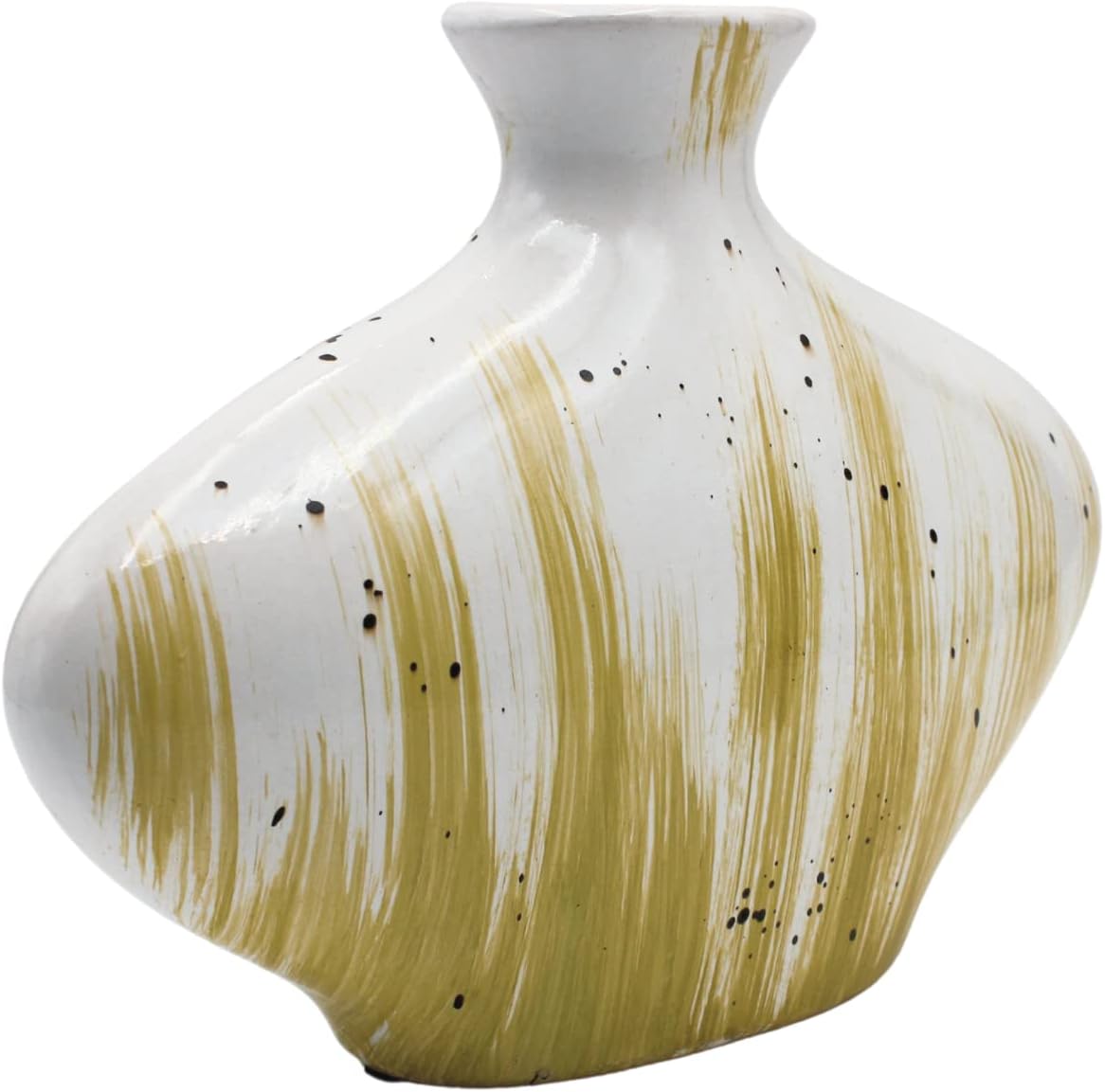 - Diese ovale Keramikvase ist handbemalt mit wunderschönen fantsievollen Muster auf weissem Hintergrund. Das Muster ist detailreich gestaltet und verfügt über feine Glitzerakzente, die ihnen einen funkelnden Effekt verleihen.