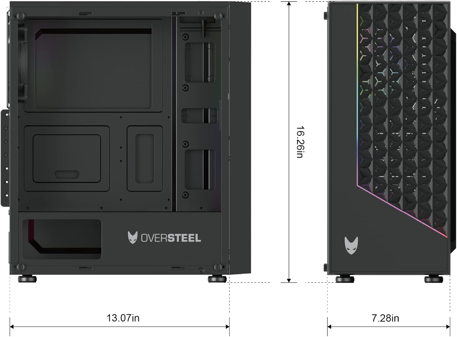 Oversteel - Iridium Gaming PC Gehäuse Kompatibel mit ATX, Micro ATX und ITX Boards, 120mm A-RGB Lüft