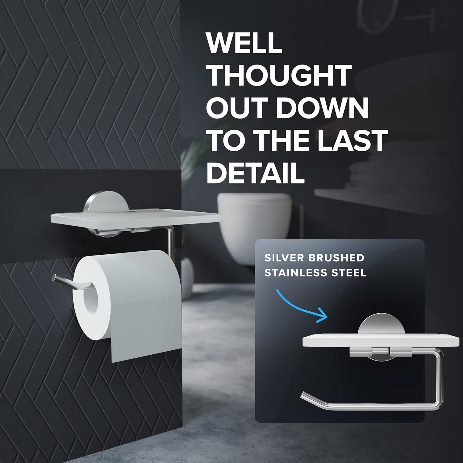 - Das perfekte Zubehör für Dein Bad: Modernes Design zeichnet den silbernen ovimar Helnaes Toilettenpapierrollenhalter mit Glasablage aus und verleiht Deinem Badezimmer eine zeitgemässe Eleganz