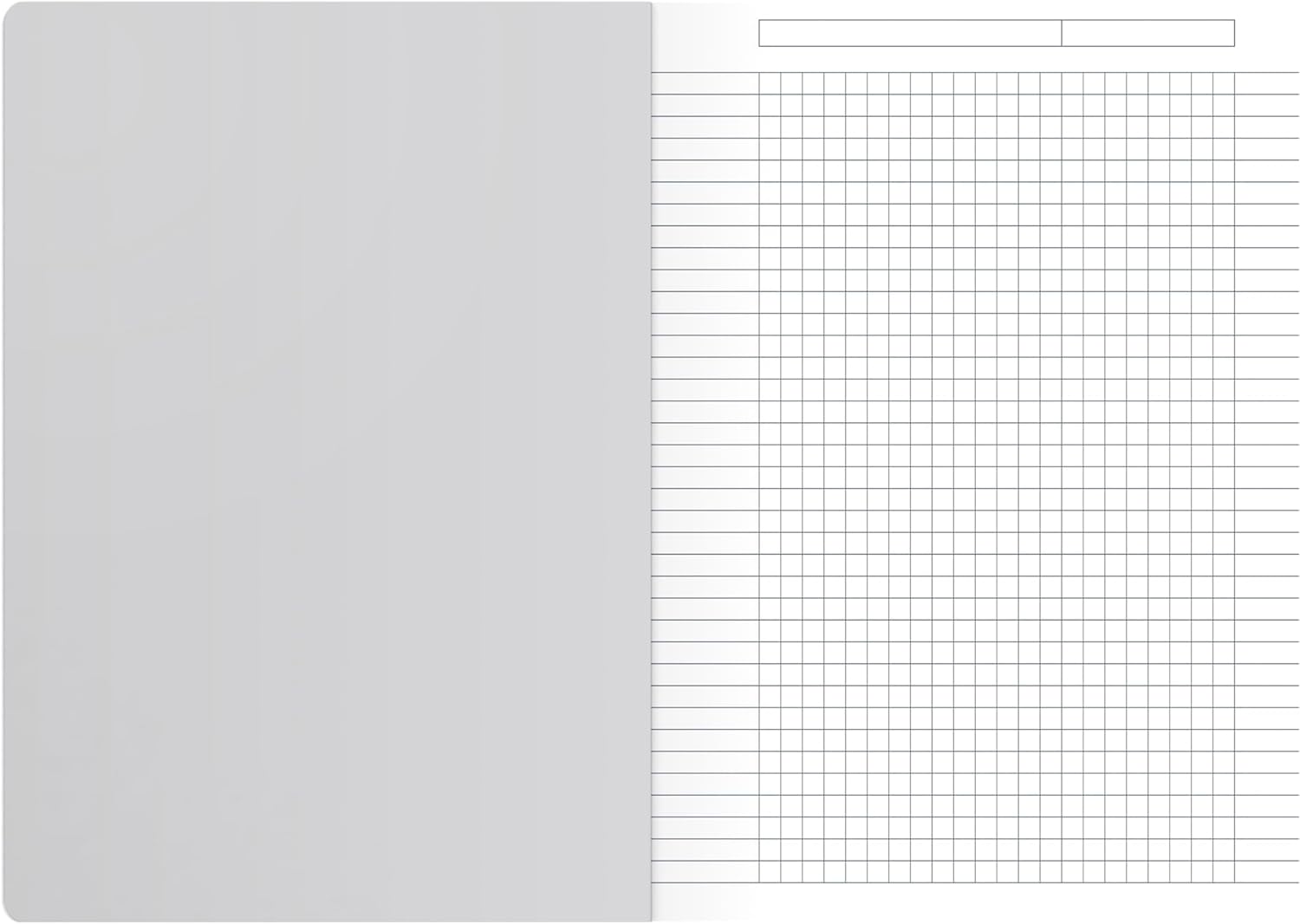 - Die Seiten sind kariert mit Kopfzeile und Rand für organisierte Notizen