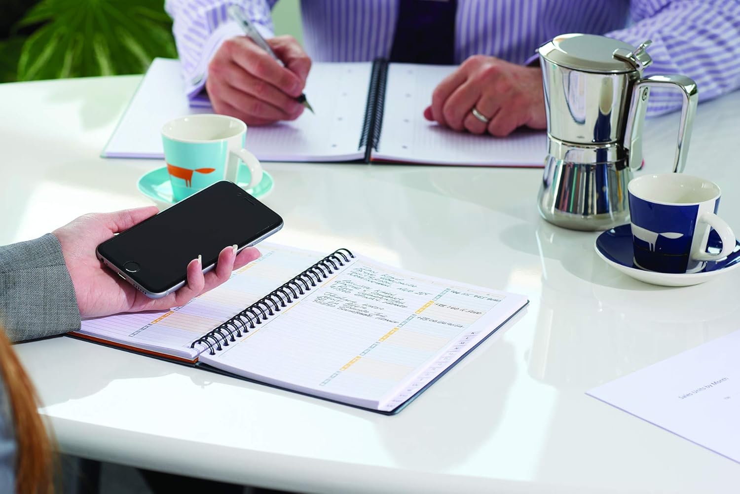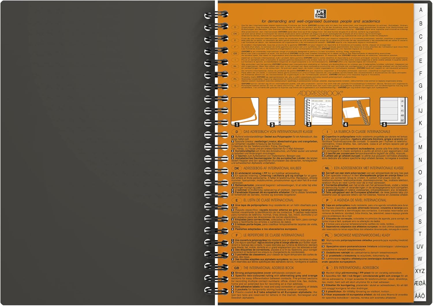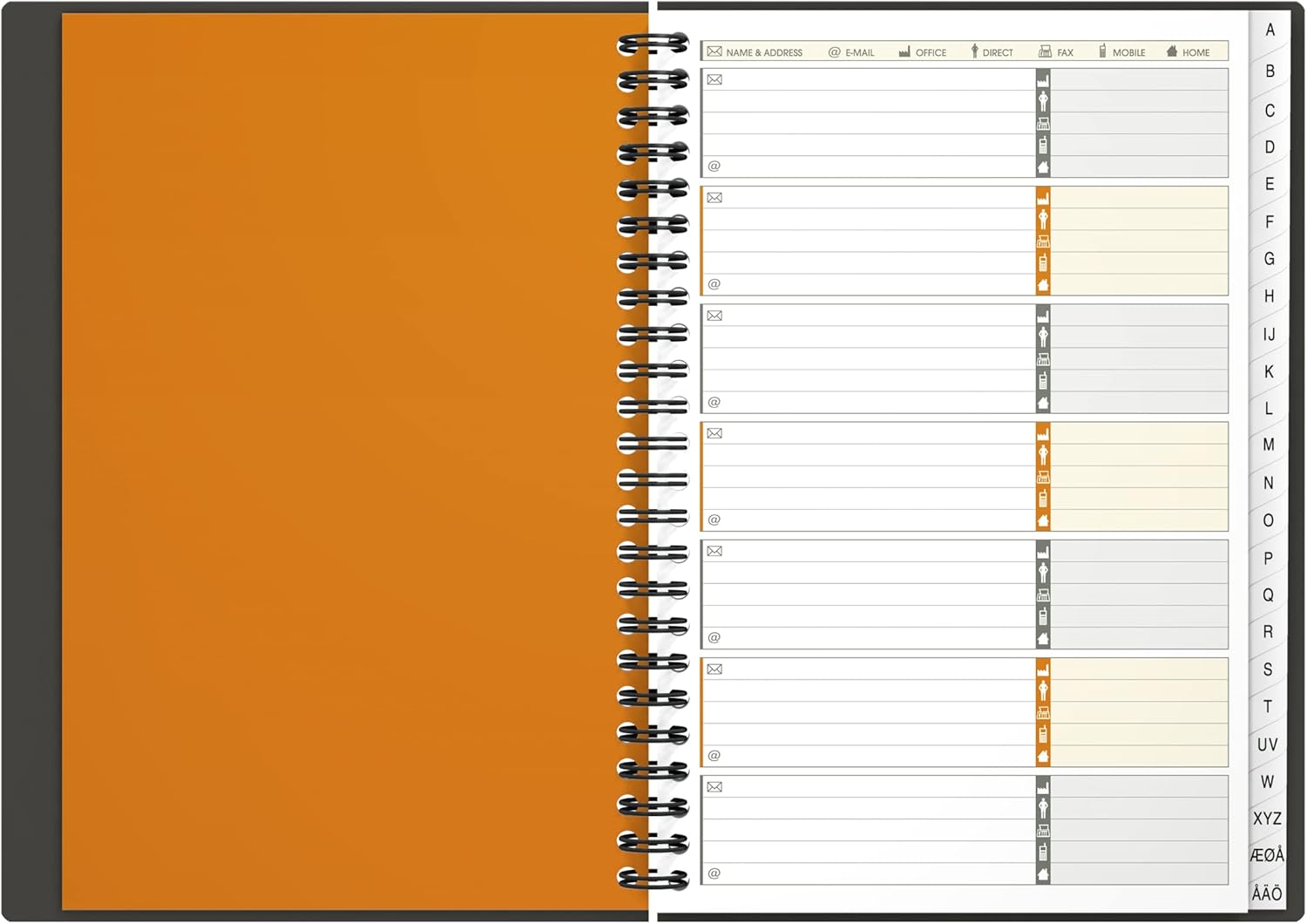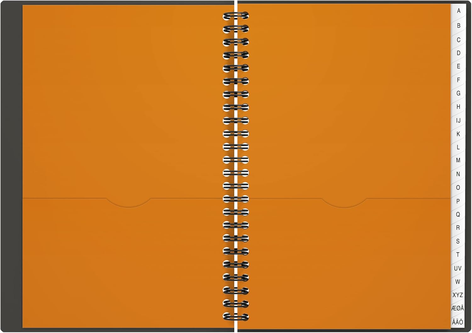 - Die robuste, schwarze Doppelspiralbindung sorgt für Langlebigkeit, während das Adressbook flach aufliegen oder vollständig umgeklappt werden kann