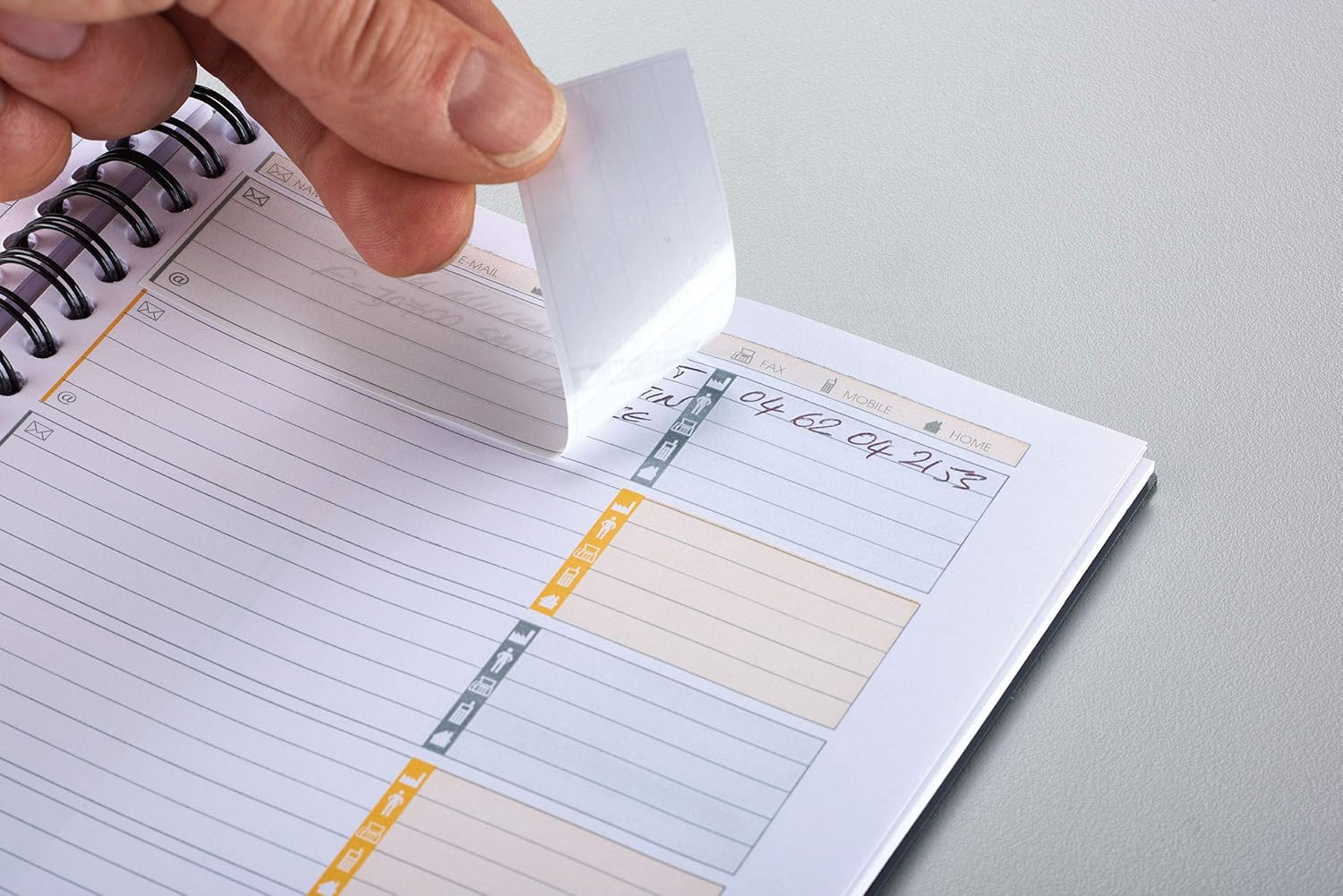 - Speziell entwickelte Lineatur für das Notieren von Kontaktdaten wie Name, Adresse, Telefonnummern und E-Mail-Adresse